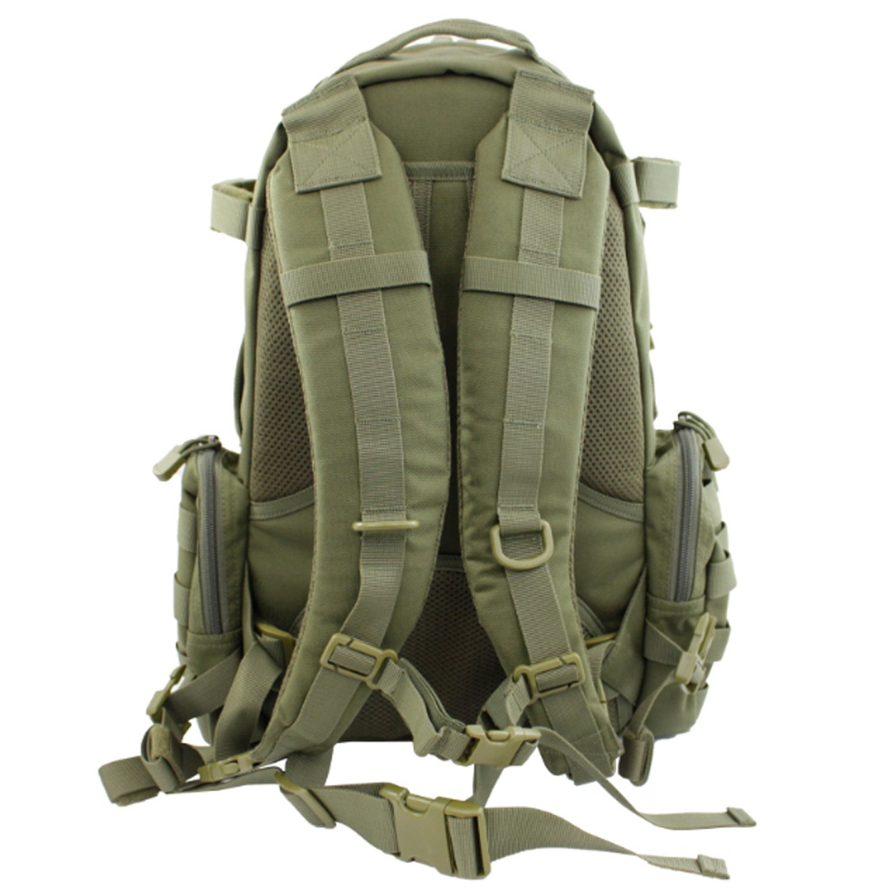 - Side zippered pockets 9"H X 5"W X 2" D on each side of the backpack with MOLLE webbing.