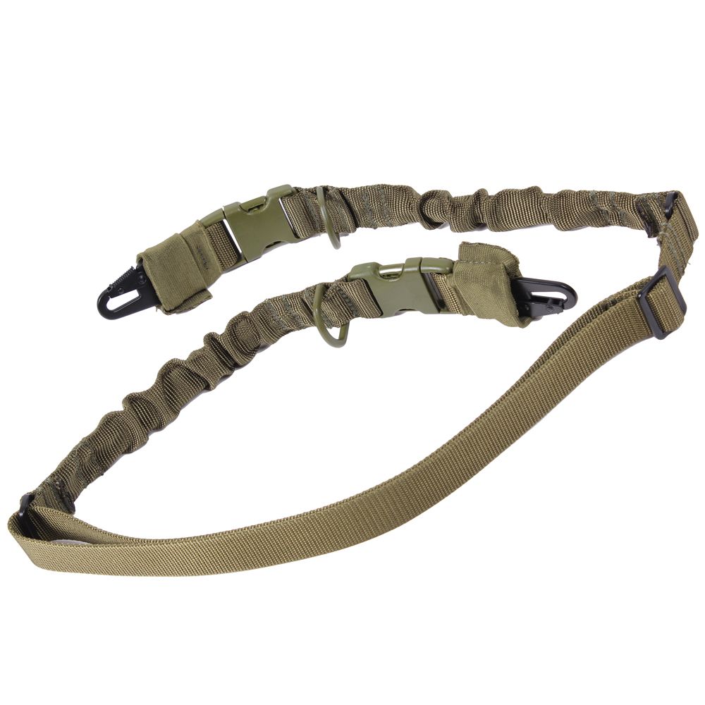 2 Point Sling features dual bungee construction and converts from a 2 point sling to a single point sling for your gun. The sling has been designed with quick release buckles to release the adapter and sling for ease of use.