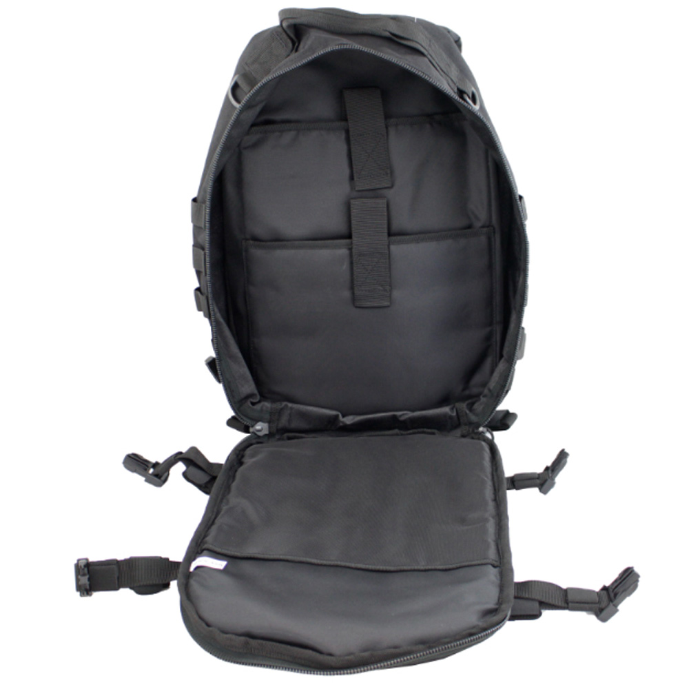 Outfitted with dependable YKK zippers featuring paracord pull cords and a robust synthetic Rhino skin drag handle with D-rings, this backpack is designed for accessibility and resilience. The main compartment, secured with a U-shaped zipper, includes tailored sleeves for laptops and tablets up to 15 inches, alongside a convenient document pouch. Stay hydrated with the backside compartment's 2.5L bladder pocket, complete with tube access.