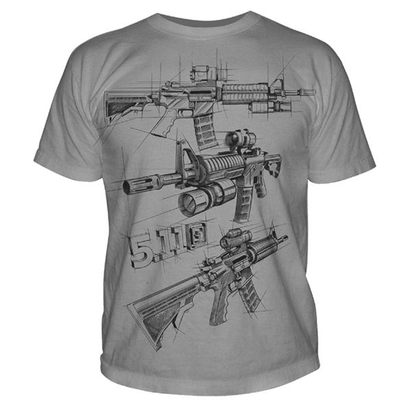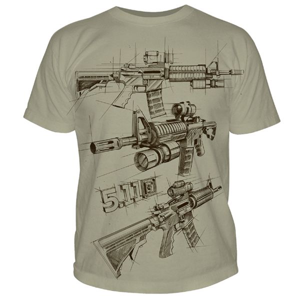 The AR Sketch T-Shirt from 5.11 Tactical lets you express yourself in comfort and style. Built from 5.5 oz. 100% soft-spun cotton for superior breathability, our AR Sketch T-Shirt is preshrunk to size and offers a generous fit, providing a clean and comfortable fit that looks and feels great. Tapered neck and shoulder line enhancements ensure complete mobility and full freedom of movement, preventing bunching at the underarm or waist. Each tee features premium quality graphical enhancements with anti-fade characteristics to ensure that your new AR Sketch T-Shirt remains bright and colorful, wash after wash.