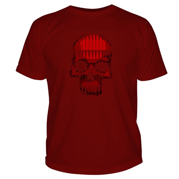 The 5.11 Bullet Skull T-Shirt is the ideal way to express yourself in comfort and style. Built from 5.5 oz. 100% soft-spun cotton for superior breathability, all of our graphical T Shirts including our Bullet Skull T-Shirt are preshrunk to size and offer a generous fit, ensuring that your new shirt will look and feel great now and in the future. Tapered neck and shoulder line enhancements provide complete mobility and full freedom of movement, preventing bunching at the underarm or waist. Premium quality graphical enhancements with anti-fade characteristics ensure that your new Bullet Skull Graphical T-Shirt remains bright and colorful, wash after wash.