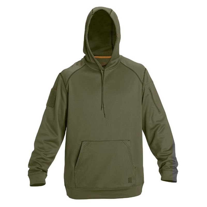 Featuring a traditional pullover design, a kangaroo-style handwarmer pocket, and an integrated hood adjustment drawcord, the Diablo Hoodie combines a classic look and feel with modern engineering. Crafted from 100% anti-pilling brushed Polyester fleece, the Diablo offers excellent rip, wind, and weather resistance while providing a clean, neat profile in any setting. Additional features include a zippered utility pocket at the left sleeve, a loop patch on the upper right sleeve, tonal contrast stitching for a dynamic appearance, and pocket reinforcements for added durability.