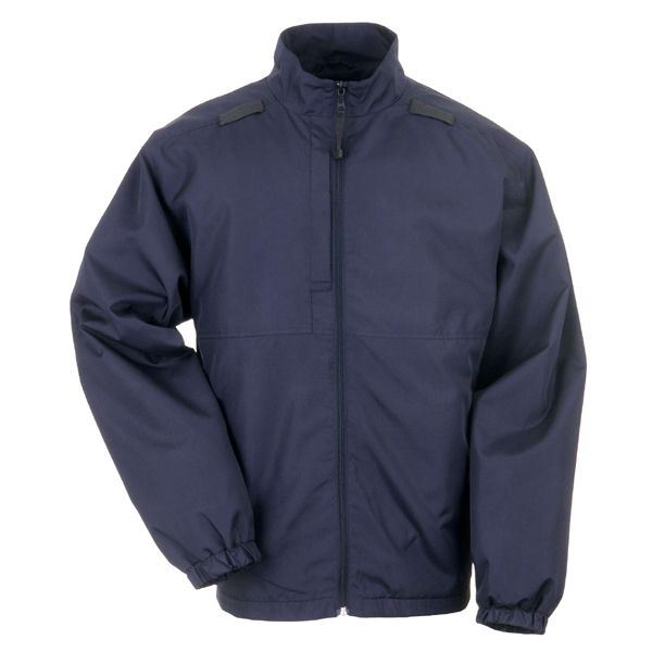 Warm, comfortable, wind resistant Folds quickly into its own compact pouch Stows easily in a truck, bag, or locker Lightweight, durable polyester outer Warm and breathable Fleece lining Elasticized sleeve cuffs Full zip front YKK zipper hardware Mic loops at both shoulder seamsHidden document pocket at chest