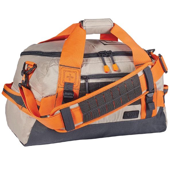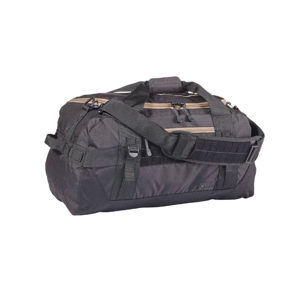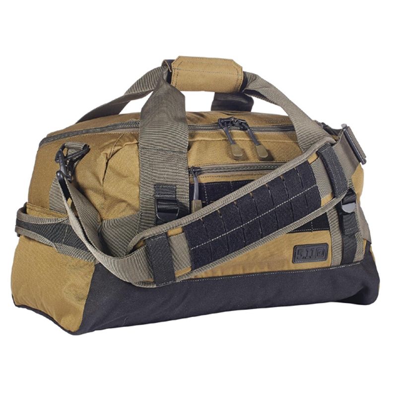 The Mike series NBT Duffle from 5.11 Tactical offers superior multifunctional capability in a compact and affordable package. Ultra-durable and weather resistant, The NBT Mike is a small duffle bag equally suited for use as a day trip carryall, a grab and go travel pack, or a rugged tote for a trip to the gun range. A removable padded shoulder strap and grab-and-go handles on three sides provide multiple carry options, while linking compression straps and a laser-cut internal web platform allow you to customize and secure your cargo space as you see fit. A removable mesh pocket bag acts as a toiletry kit or a see-through internal organizer, and a high performance waterproofing treatment keeps your gear clean and dry in any climate.