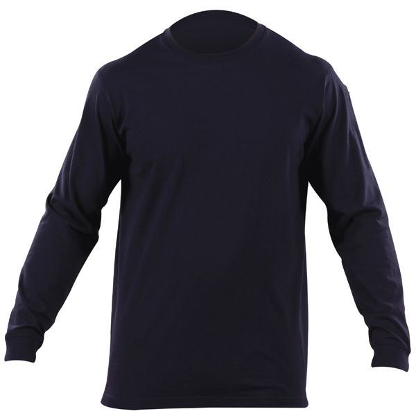 The Professional Long Sleeve T is designed to provide a superior fit and professional profile while retaining the easy wearability and comfort of a traditional t-shirt. Crafted from 6 oz. ring spun cotton for superior breathability and lasting resilience, the Long Sleeve Professional T offers a no-roll high density collar for a clean, neat appearance, a spandex ribbed crew neck for a secure, flexible fit, and our traditional 5.11 pen pockets on the left sleeve. Moisture wicking action keeps you cool and dry, while our fade, wrinkle, and shrink resistant fabric treatment keeps you looking your best. A tapered cut and generous length ensure that your shirt stays tucked in all day, and double needle tailoring at the shoulder increases garment strength to withstand rugged use.