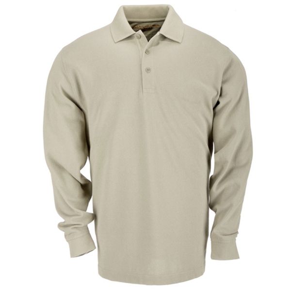 5.11 Professional Polo long sleeve shirts are a consistent favorite among law enforcement and military professionals worldwide. Built from strong, durable, and surprisingly comfortable 6.8 oz. pique knit cotton, our 5.11 Professional Polo long sleeve shirt offers all the features you expect from top grade men’s wear. A no roll-collar and flexible collar stays ensure a clean, professional appearance in any situation, tough melamine buttons won’t burn, crack, or melt, the three-button placket adds a traditional style, and a drop tail hem with side splits keeps your polo securely in place all day long.