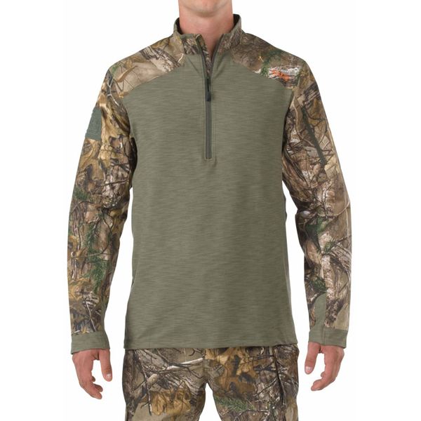 Inspired by our popular Rapid Assault Combat Shirt, the Rapid Quarter-zip in Realtree is built from a high performance, quick-dry, two-way stretch polyester/spandex fabric that provides a snug and secure fit without bunching or rolling. An ideal bottom or mid layer, the Realtree Rapid Quarter-Zip features a moisture wicking finish that keeps you warm and dry, a secure zip pocket on the left arm, an embossed loop platform on the left arm, and stylish embroidered 5.11 branding.