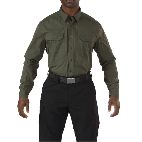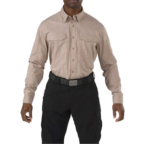 Crafted from the same exclusive 4.84 oz. Flex-Tac mechanical stretch fabric as our popular 5.11 Stryke Pant, the 5.11 Stryke Shirt sets a new standard for tactical shirts worldwide. Offering unprecedented durability, comfort, and mobility while maintaining a clean and professional appearance in any setting, the 5.11 Stryke Shirt is Teflon treated to repel stains, soil, and light precipitation. Pen pockets at the left sleeve keep your writing implements within easy reach, integrated tabs keep rolled-up sleeves secure, our patented 5.11 Hidden Document Pockets provide ample covert storage space, and a locker loop at the collar enables easy storage.