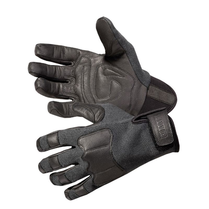 Crafted from goatskin leather and knit Kevlar fabric Adjustable hook and loop closure with leather tab Lightly padded palm improves weapon and tool handling comfort