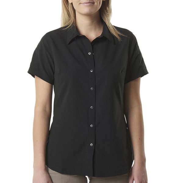 The Women's 5.11 Corporate Shirt lets you set the tone in the office or in the field. Stay comfortable and cool in mechanical stretch fabric with a moisture wicking finish. Stay ready with the 5.11 RAPIDraw™ placket that allows you to easily access to your holster or other CCW. There's even handy, dual pen pockets on the sleeves. The bust dart and tapered waist create a great fit, and thoughtfully placed 5.11 ring snaps at the collar band and center front placket put the final touch on a perfectly polished look. Time to rule the day.