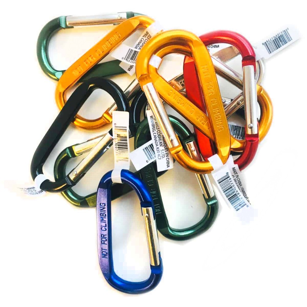 Useful for attaching equipment, clothing, keys, tools and more to packs, canoes, tents or belts. Not intended for climbing.