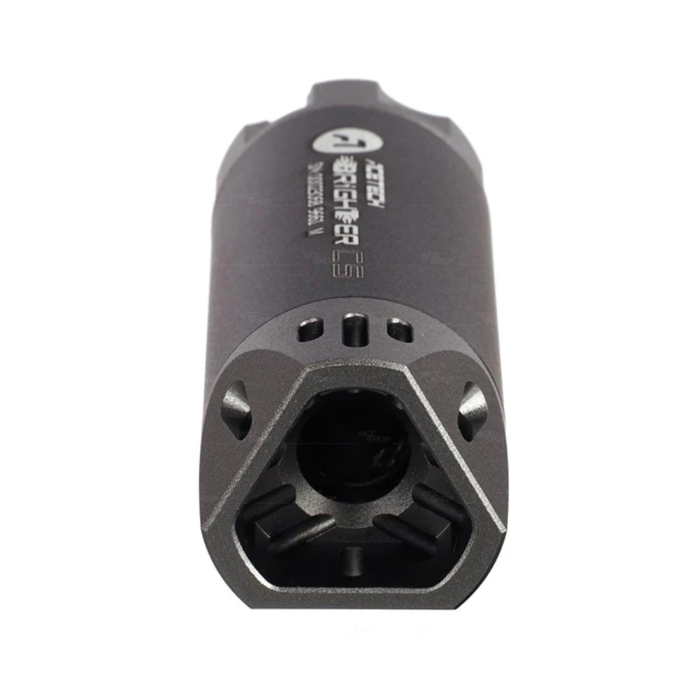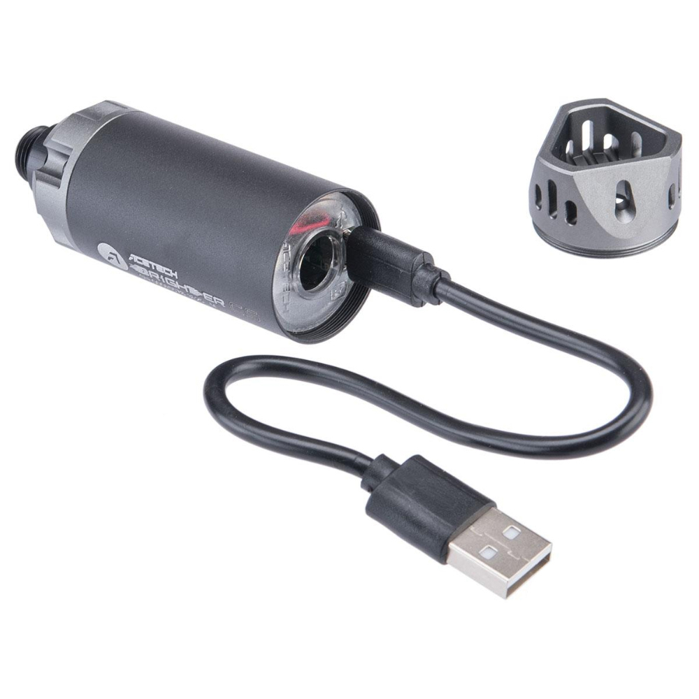 The Brighter CS Compact Rechargeable Tracer Unit is packed with great technology. Along with its base function of being a tracer unit, it also can be dropped into a compatible mock silencer or suppressor. The unit also comes with intelligent power control. It will enter sleep mode after five minutes of being idle and requires only a shake to power on.
