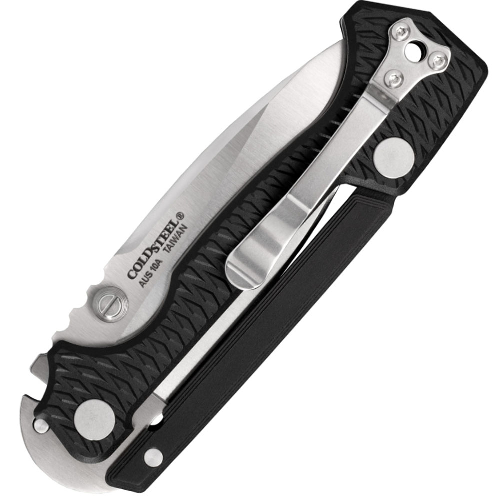 The Cold Steel AD-15 is a large, robust pocket knife, designed by Andrew Demko. This American designer is responsible for a large part of Cold Steel's folding knife successes. The AD15 is another masterpiece. One of Demko's most famous inventions is the Tri-Ad lock. This rock-solid lock is often tested and proven to be the strongest on the market. This production version of Demko's custom AD-15 introduces another new locking mechanism: the Scorpion Lock. Just like a scorpion's tail hangs over its own body, the lockbar bends from the spine of the handle down to the blade.