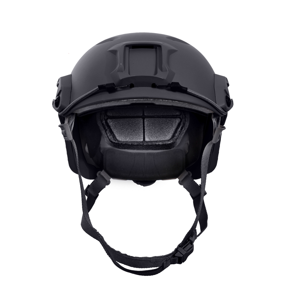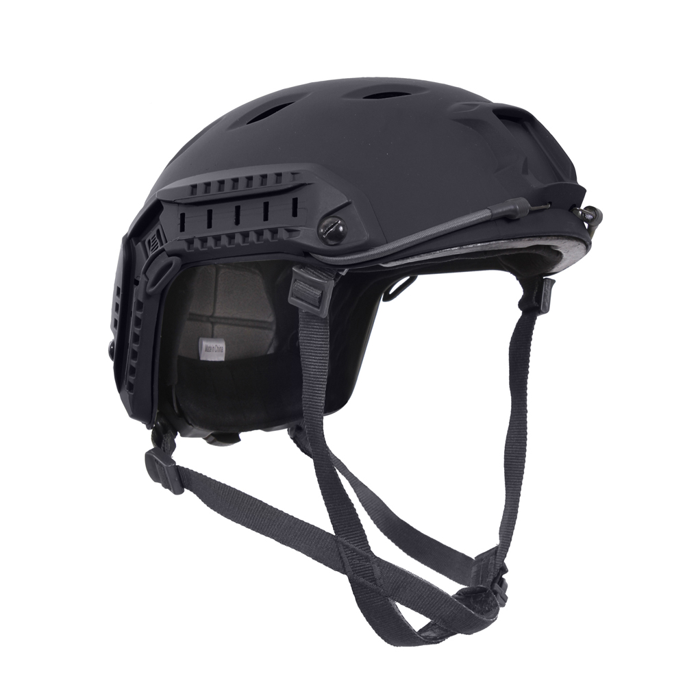 Advanced Tactical Adjustable Airsoft Helmet is a lighter, more advanced version of Base Jump Helmet. The Advanced Adjustable Airsoft Helmet is made of lightweight ABS plastic with 8 diamond shaped vent holes to keep the head cool; 5 removable/ adjustable EVA foam cushion interest with loop attachments, integrated military style head-lock chinstrap with side release buckle, rear dial helmet adjustment, 2 multi-position accessory side rails (side rails that fit Base Jump Helmet Accessory Pack – item #1895), NVG front mount ideal for optics, dual bungee design allows for stability of night vision optics, 2 sided and 1 rear loop patch attachments, and 3 extra EVA foam cushion inserts. Advanced Tactical Adjustable Airsoft helmet is great for airsoft, paintball, and tactical (non-ballistic) training exercises.