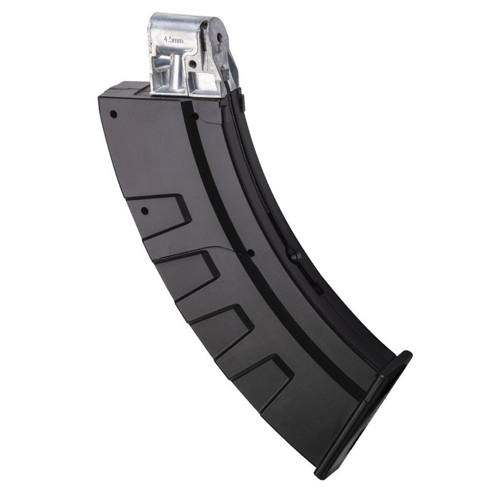 Keep the fun on-going by having an extra magazine at hand that will also spare you the worry of running out of ammunitions middle-field. This spring fed drop out curved magazine can be filled beforehand with two CO2 cartridges or up to 28 rounds of .177 BBS and can be simply carried with you on field to reload your Crossman AK1 immediately as needed.
