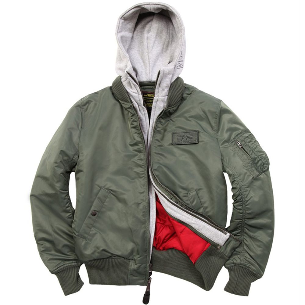 Modern fans of military style and construction will want to get their hands on our hooded flight jacket. The MA-1 D-TEC jacket is a contemporary take on the original Alpha MA-1 Flight Jacket, with thickly knit cuffs, collar and waistband. One very unique part of this MA-1 Flight Jacket is the removable mock fleece liner that zips out to give the D-TEC a more traditional flight jacket style. This hooded flight jacket features a Velcro Alpha logo chest patch and contrast-colored lining. The 100% flight nylon outer shell and poly-fill/nylon lining ensure you’re dry, warm and protected against the wind.
