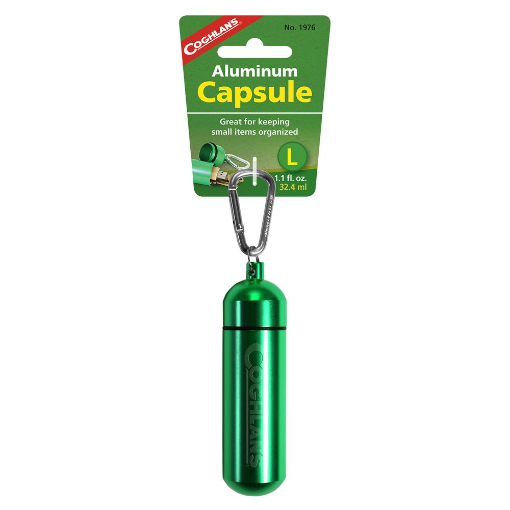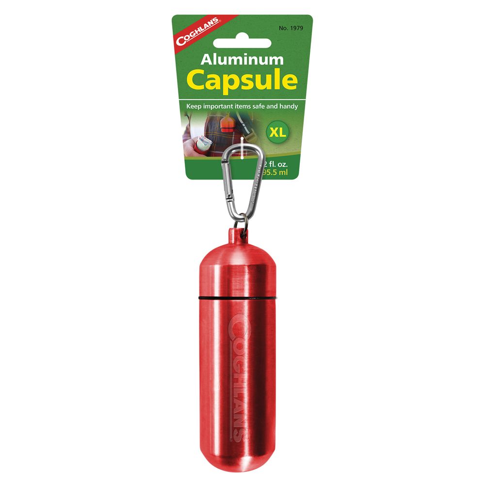 Coghlan’s Aluminum Capsules are infinitely useful almost anywhere. A convenient carabiner allows them to be attached to a belt or backpack instantly and securely. A rubber o-ring ensures a completely watertight seal making the capsules ideal for anything that must be kept dry. Four sizes add versatility, offering even more storage options. From money to repair kits to first aid kits, these capsules will find a place on every outing.