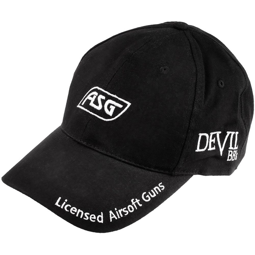 Represent the ASG brand with this Baseball Cap. The black hat adjusts for the perfect fit and features white logo lettering on the front crown. On the sides are logos for Devil BBs and Ultimate Upgrade Series.
