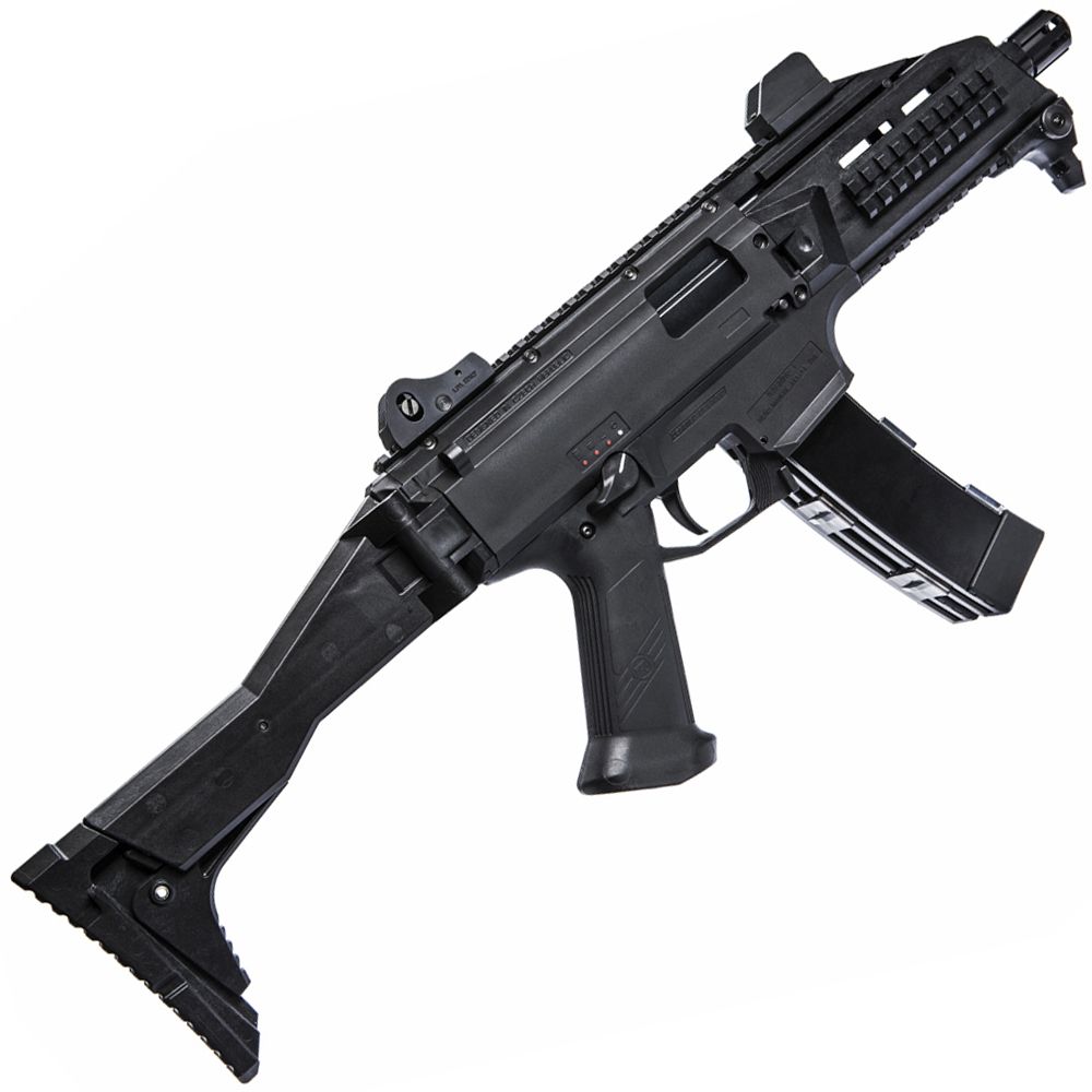 The Scorpion EVO 3 A1 is known for its exceptional ergonomics, low profile build, and power all put into a lightweight and easily handled submachine gun. The EVO 3 A1 gearbox is made from proprietary metal and V2 compatible, with a firing mechanism that allows the gun to be shot on 3 different firing modes: fully automatic, 3 round burst, and semi-auto. The internal components features a new ECU (Electronic Control Unit) hooked up to low resistance wiring that makes this airsoft gun LiPo ready out of the box. Externally, only the highest quality materials make the cut for the construction. These materials include glass reinforced nylon-fiber polymer, CNC machined aircraft grade aluminum, and machine-cut steel. The rail system features a full length top rail for optics, PEQ lasers, and similar accessories & a quad rail on the handguard for other vital parts. The stock is extendable/retractable and folds to the side for an even lower profile in tight environments or for use in vehicles, indoors, or airborne operations. Other details like adjustable iron sights, low profile sling mounts, an empty mag detection that stops the gun from firing after the last round, the functional bolt catch/lock, the quick-detach spring guide for easy spring swapping, and a battery monitor that automatically shuts the gun off when low voltage is detected all lead to show the incredible ingenuity by ASG to manufacture only the best.