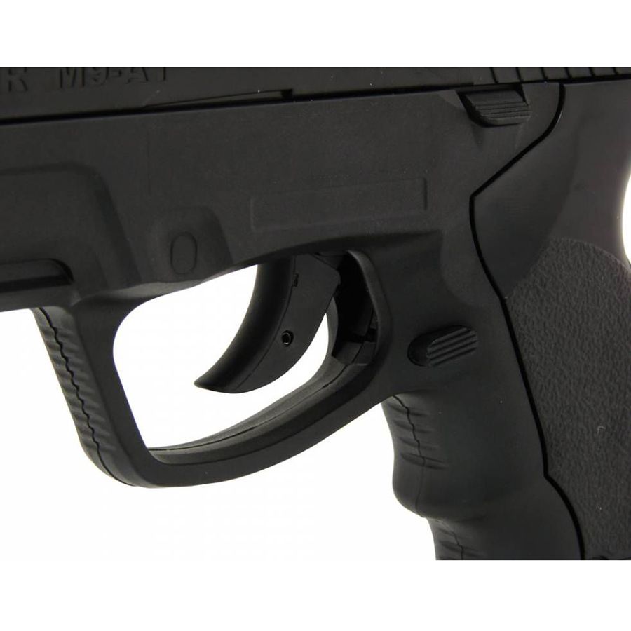 This pistol is fully licensed by Steyr Mannlicher, Austria. The ergonomic grip, illuminated rear sight and waiver/picatinny accessory rail makes this pistol very comfortable with a lot of external upgrade possibilities. The 12g Co2 capsule is stored in the grip and is easily changed. With 460 FPS this is a very hard hitting pistol.