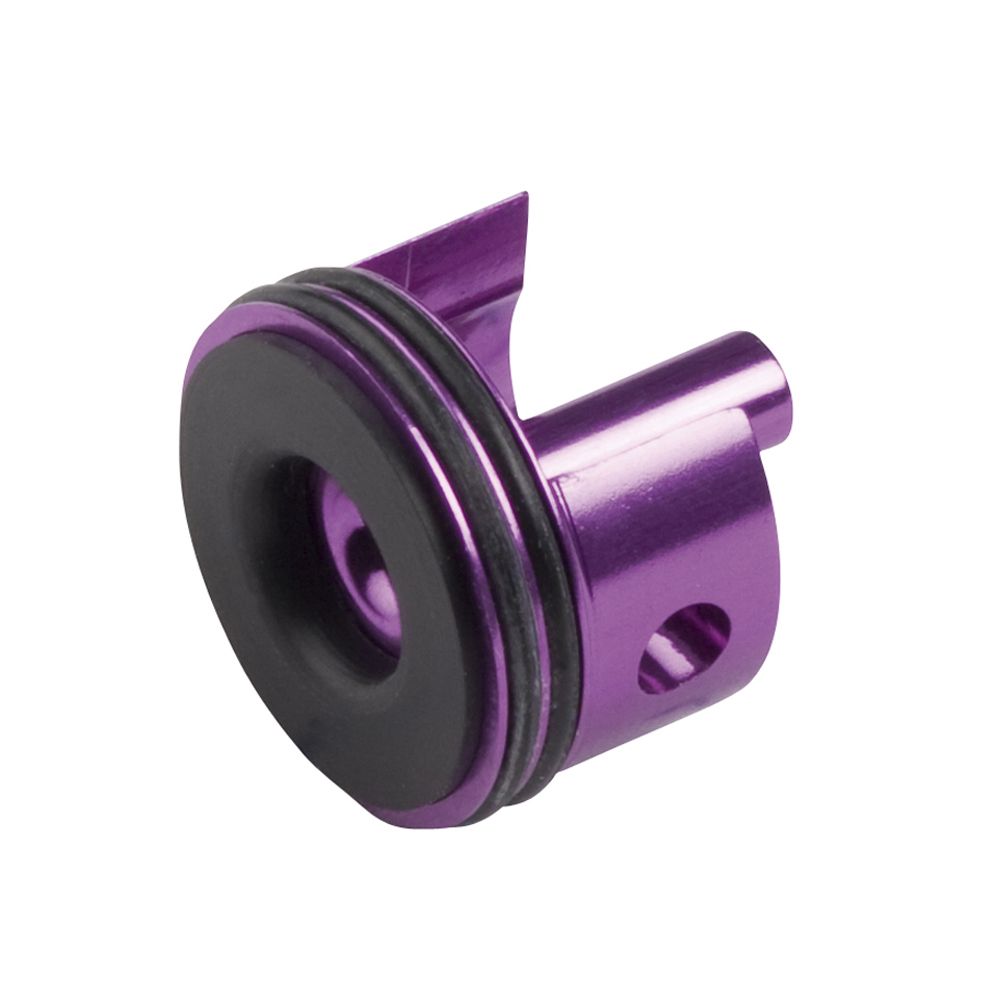The Upgrade Series cylinder head have been CNC manufactured in machine-aluminium and thereafter anodized with a colour code for easy recognition. The heads have been designed with double rubber seals to minimize loss of compression from the cylinder. The special ‘trumpet design’ ensures optimal delivery of air to the barrel/BB. Furthermore, the cylinder heads have a powerful built-in rubber band that absorbs the shock from the piston head.