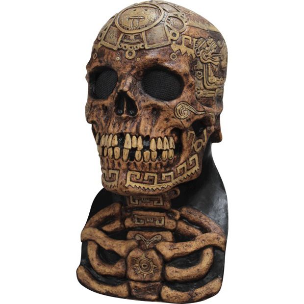 You’ll be the life of the party in the Aztec Skull Costume Mask! This realistic skeleton mask features weathered bones with intricate designs carved on the head and neck. Some teeth are missing from the grinning skull, adding to the authenticity of the look. The overhead mask comes with a neck piece and is made of quality latex material. Great for use at haunted houses and other spooky events.