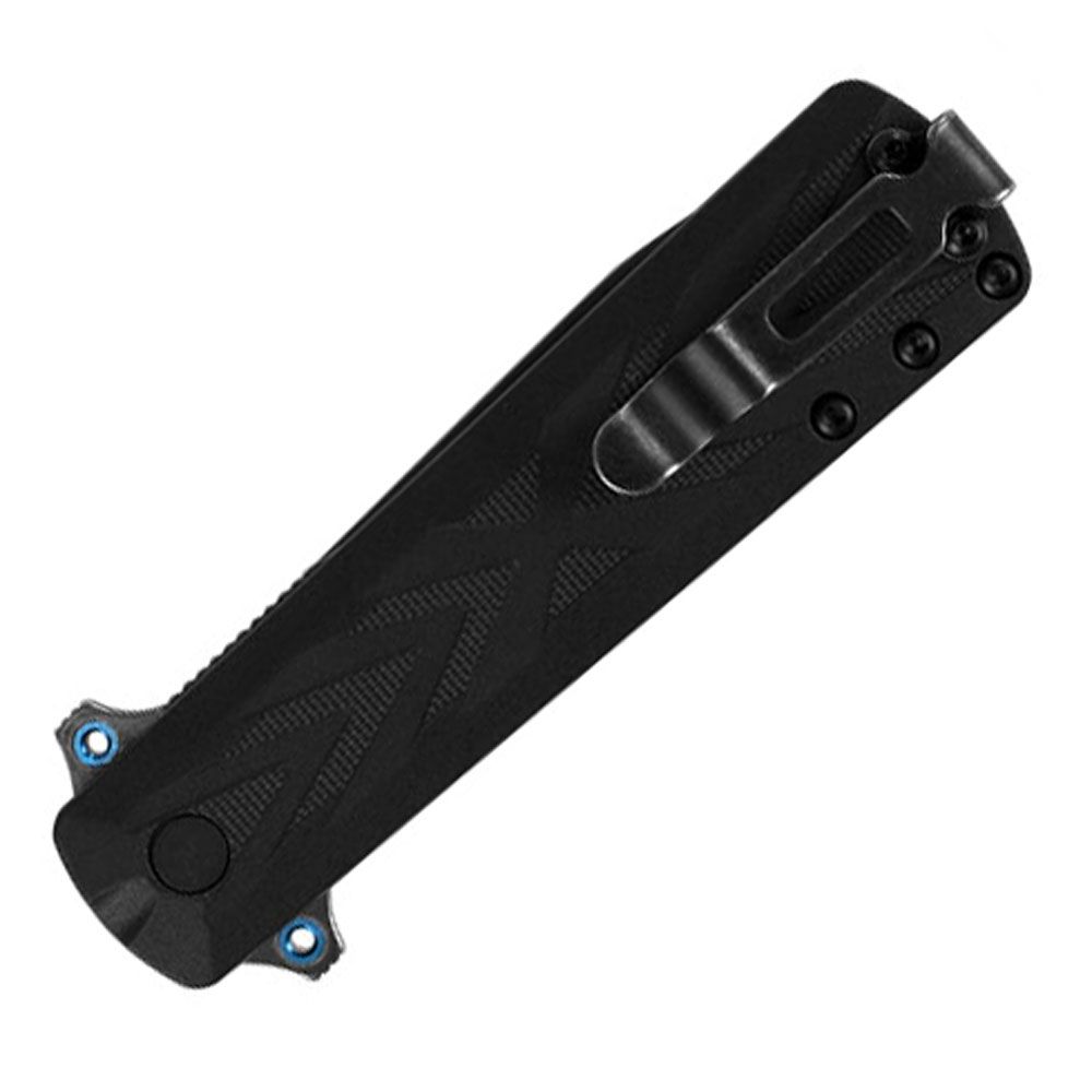Even better, the Barstow opens quickly and easily with SpeedSafe assisted opening and the built-in flipper. All the hardware is black—with the notable exception of the Barstow’s tube spacers, which are anodized in blue for a touch of subtle color and eye-catching interest. For convenient and discreet carry, the deep-carry pocketclip enables the knife to ride low in the pocket and is left/right reversible.