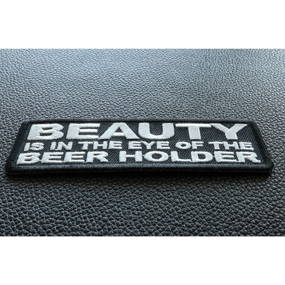 Celebrate The Fun With The Beauty Is In The Eye Of The Beer Holder Naughty Patch! No One Can Deny That A Few Beers Can Make The Night More Enjoyable - And This Patch Perfectly Captures That Spirit! Measuring 4x1.25 Inches And Embroidered In Crisp White On A Classic Black Background, This Patch Is A Hilarious Addition To Your Biker Gear.
