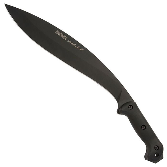 The KA-BAR Becker Reinhardt Kukri is an all-black machete that easily clears unwanted branches or brush. Take it on your next camping trip to make space for your tent or trailer. Its 1095 carbon steel blade can be easily sharpened and is protected by an black epoxy coating. The Ultramid® handle is ergonomically shaped for a comfortable, yet sturdy grip. The machete's extended butt end can be used for hammering in tent pegs.