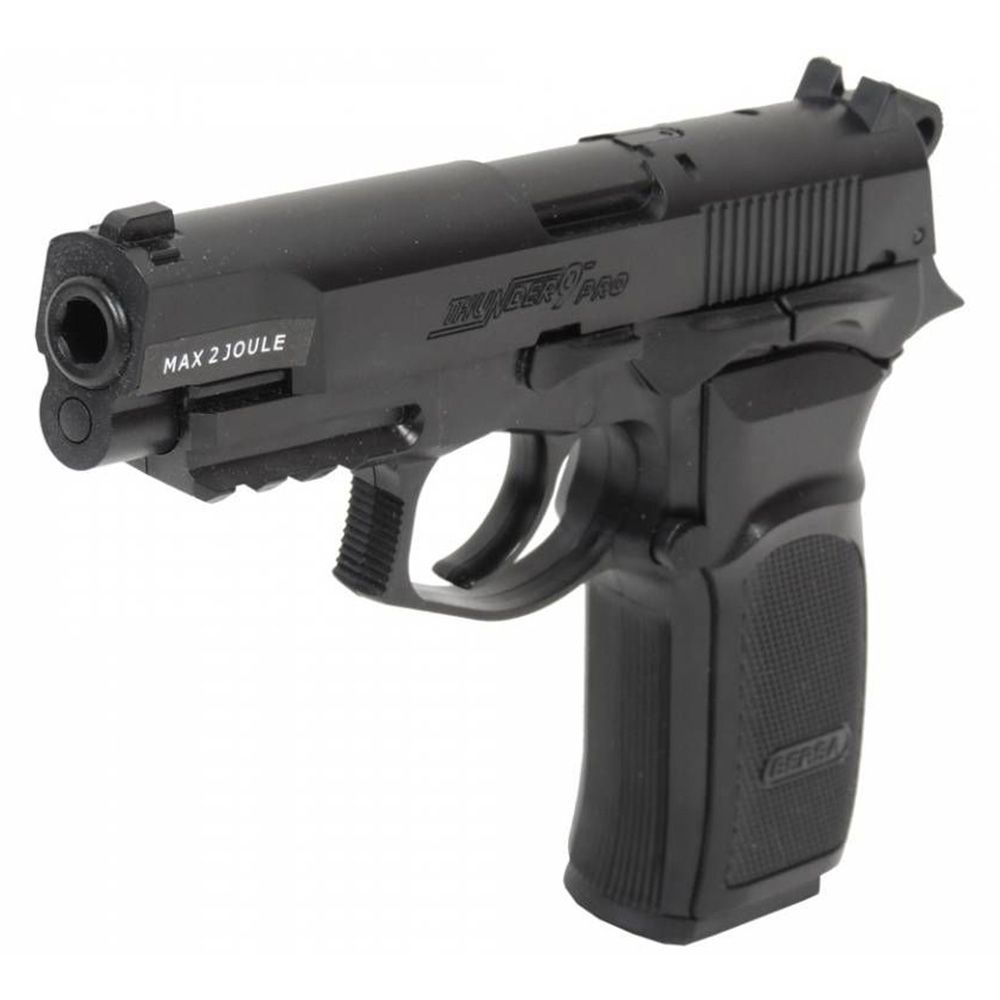 Looking for your next skirmish gun? The BERSA Thunder 9 Pro CO2 Pistol is compact and easy to conceal. The polymer airgun features an efficient non-blowback design, an integrated lower accessory rail, and an adjustable hop-up system. Official BERSA trademarks are on the sides of this full-scale replica.
