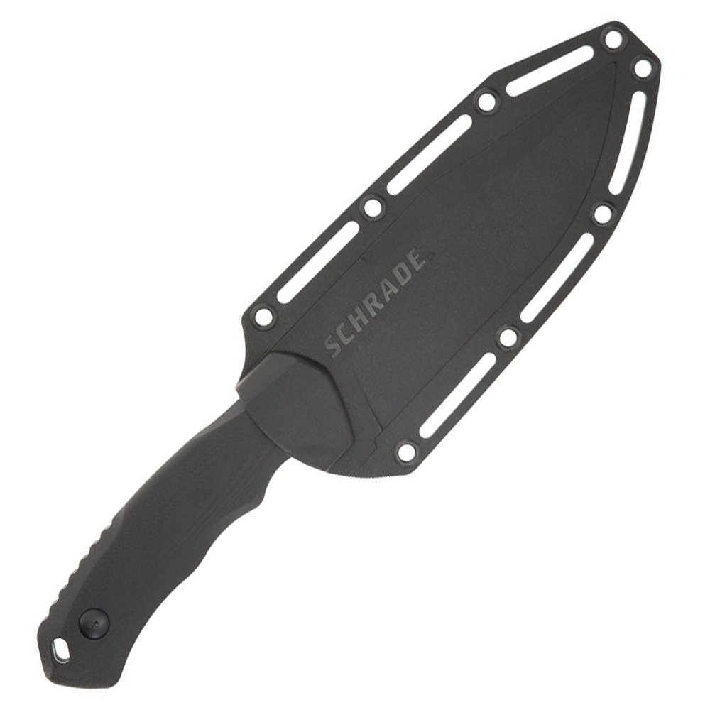 This fixed blade knife offers a balanced feel and exceptional cutting capabilities. The G10 handles ensures a solid grip, while the AUS-8 steel provides a desirable balance of sharpness, functionality and edge retention. The thick-profile black oxide blade provides the toughness that Schrade knives were built on.