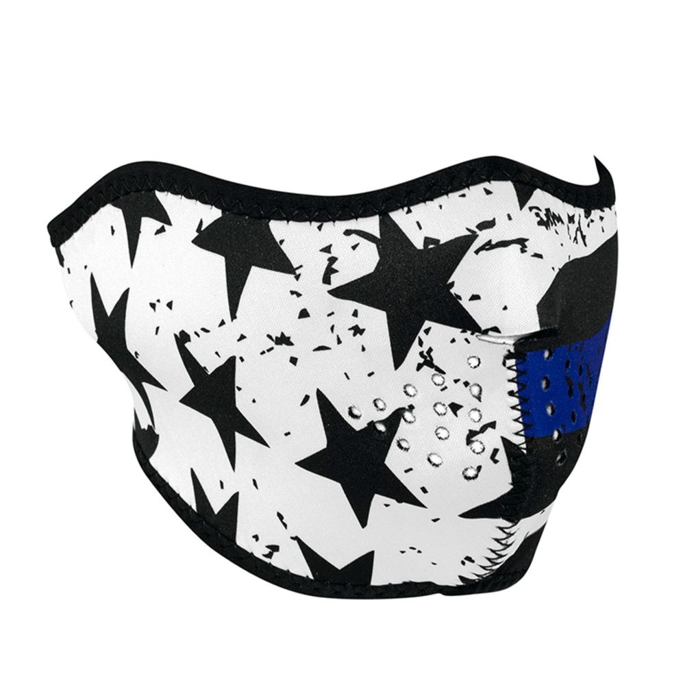 Designed for all of our heroes in blue, the Blue Line Half Face Mask is meant to honour the protectors of the peace who keep our streets safe. This mask is made of durable neoprene material and comes with a hook and loop closure for a comfortable fit. The mask is reversible to black material. One size fits all.
