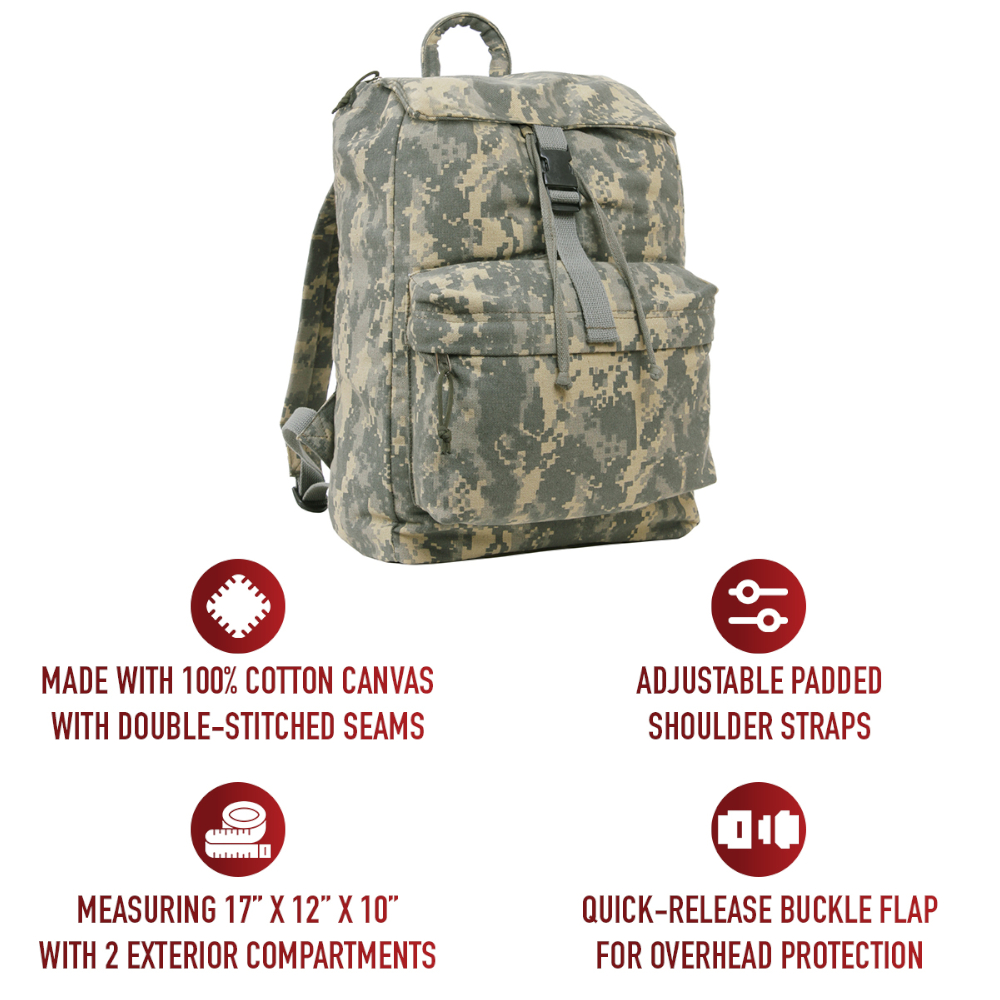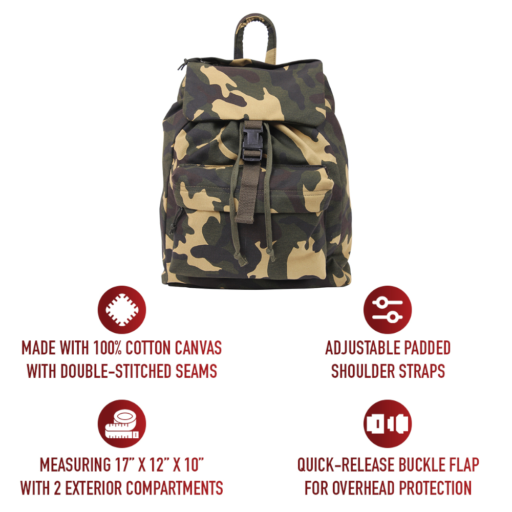 Embrace Every Adventure With This Military-Style Canvas Backpack by Ultra Force, Designed For Durability And Functionality. Featuring A 34L Storage Capacity, This Heavy-Duty Backpack Offers Ample Space For Your Daytrip Essentials, Hiking Gear, Travel Necessities, And Everyday Carry Items. Crafted From 100% Heavyweight Cotton Canvas, It’s Reinforced With Double-Stitched Seams For Maximum Strength And Longevity. The Naturally Water-Resistant Fabric Protects Your Belongings, While The Secure Quick-Release Buckle And Drawstring Closure Keep Everything Safe And Dry. Whether You’re Hiking, Camping, Fishing, Commuting, Or Traveling, This Backpack Delivers Reliable Performance And Comfort.