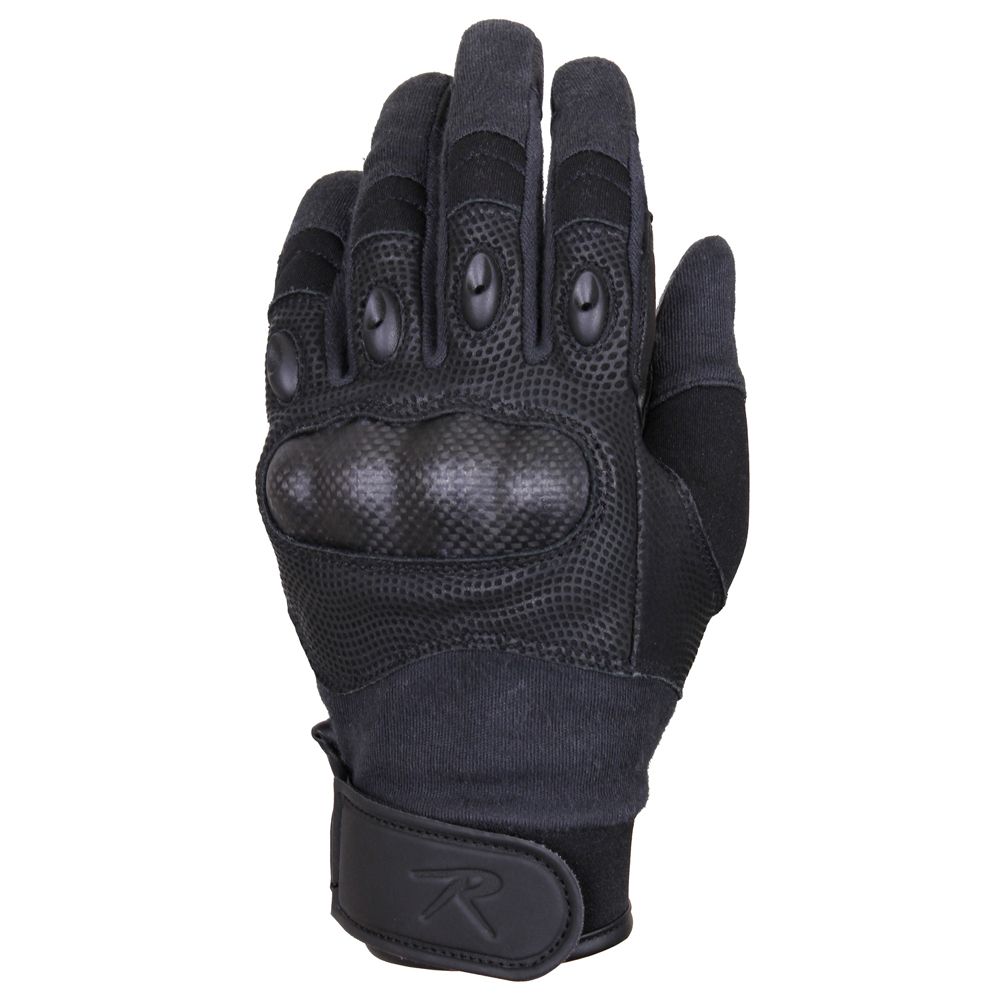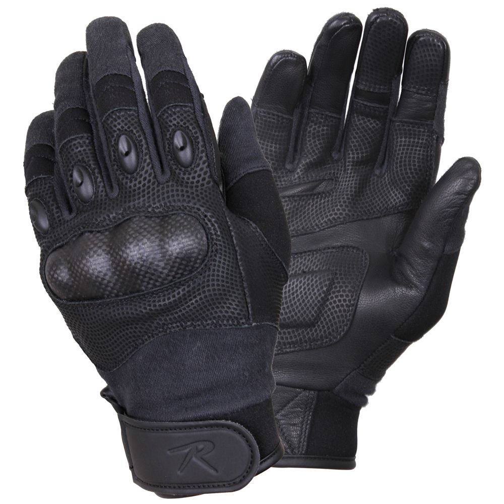 The Ultra Force Carbon Fiber Hard Knuckle Tactical Gloves are made of a cut, heat, and flame resistant material like their Hard Knuckle Glove counterparts, but with knuckles that are protected by molded carbon fiber inserts that are surrounded by textured genuine leather. The palms have two layers of leather; the base layer is smooth and the top layer is textured. For a secure fit, the gloves feature a hook & loop closure at the wrist