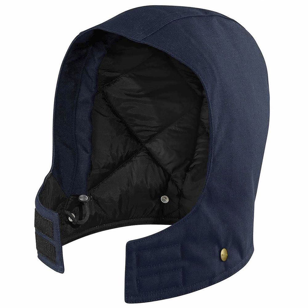 12-ounce, firm hand duck Nylon lining quilted to arctic-weight polyester insulation Hook-and-loop chin strap closure with adjustable front opening Three-piece hood construction with adjustable drawcord with cord lock Triple-stitched main seams