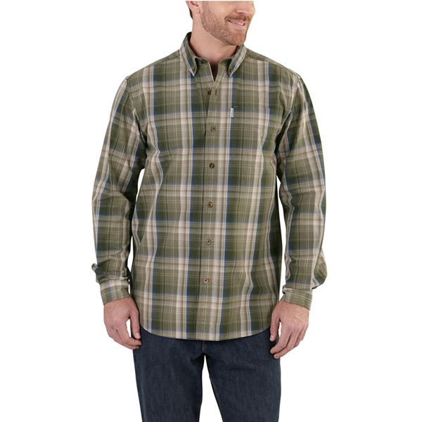 5.5-ounce, 100% cotton poplin Garment washed for a soft finish and reduced shrinkage Stain Breaker technology releases stains Button-down collar Left chest pocket Two-button adjustable cuffs with extended plackets