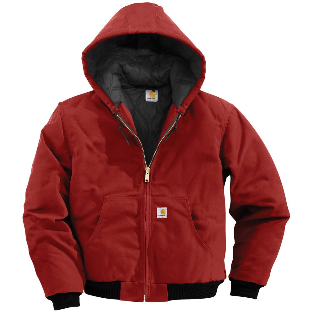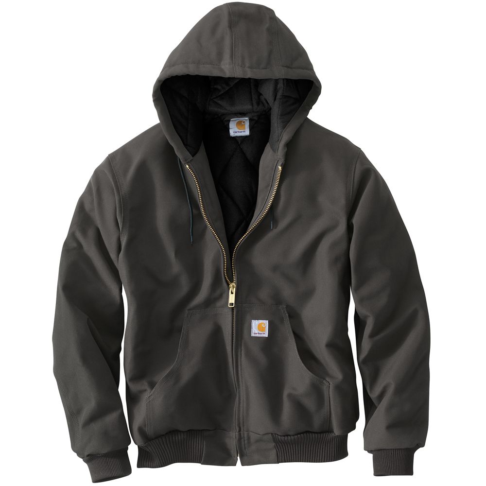 12-ounce, heavyweight firm-hand, 100% ring-spun cotton duck. Water repellent and Wind resistant. Quilted-flannel lining in body, quilted-nylon lining in sleeves Attached quilted-flannel-lined hood with draw-cord closure Two inside pockets for additional storage Rib-knit cuffs and waist work to keep out the cold
