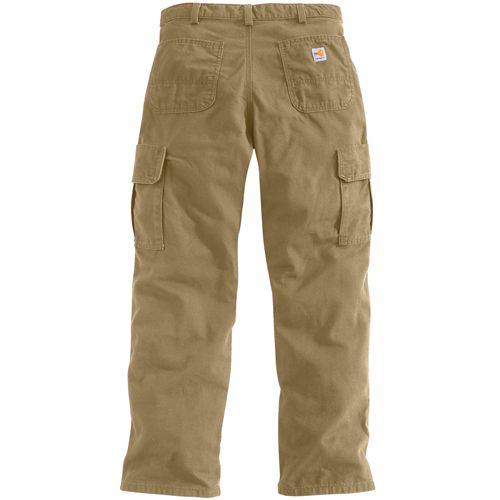 8.5-ounce, FR canvas: 88% cotton/12% high-tenacity nylon Sits slightly below the waist Full seat and thigh Arc-resistant button closure at waist Straight leg opening Two reinforced back pockets