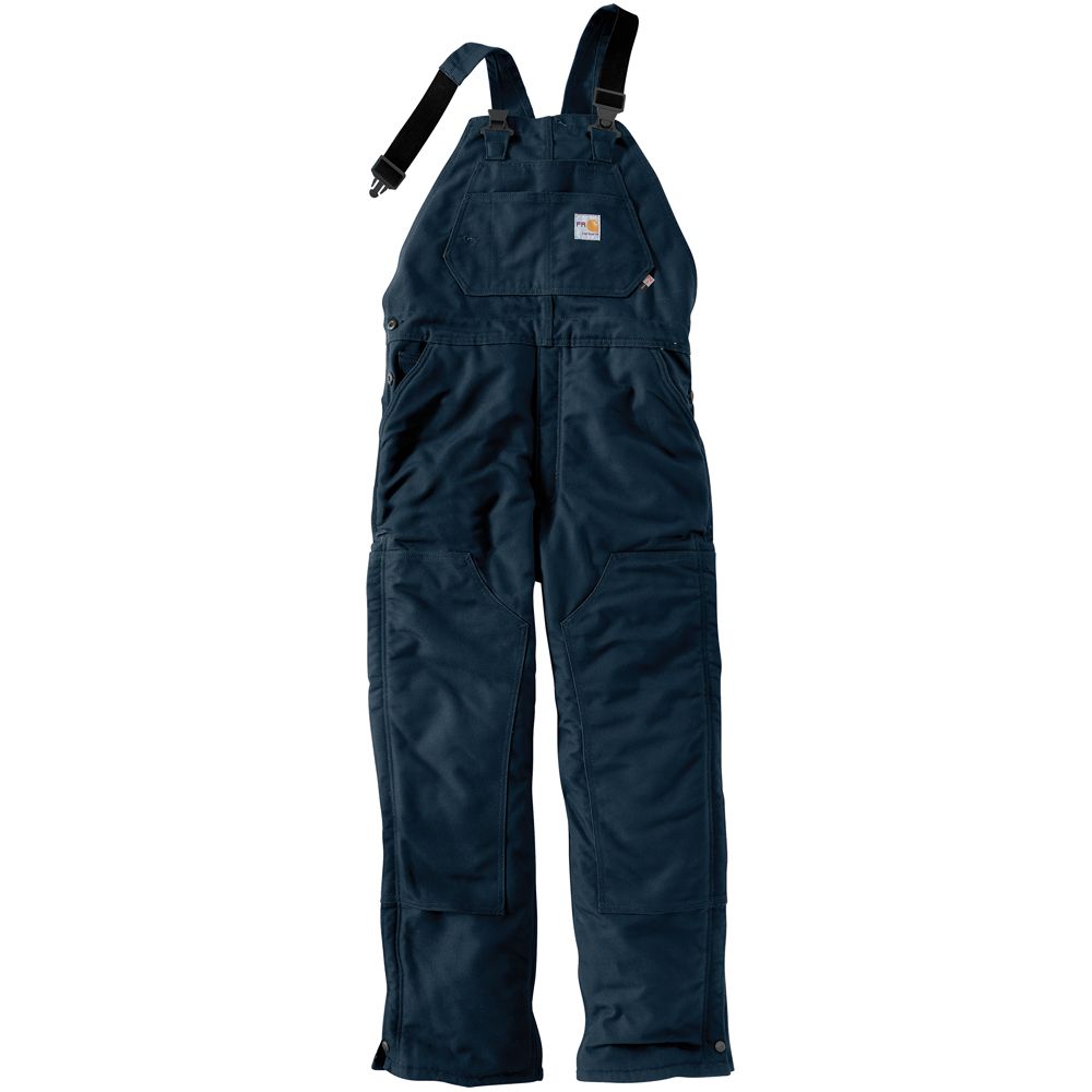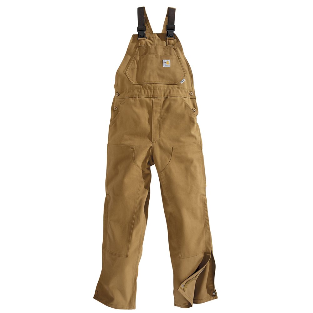 13-ounce, 100% cotton FR Duck High back with FR elastic suspenders and FR center-release buckles Chap-style double-front enhances durability Ankle-to-above knee brass leg zippers with Nomex FR zipper tape and protective flaps with arc-resistant snap closuresMultiple tool and utility pockets