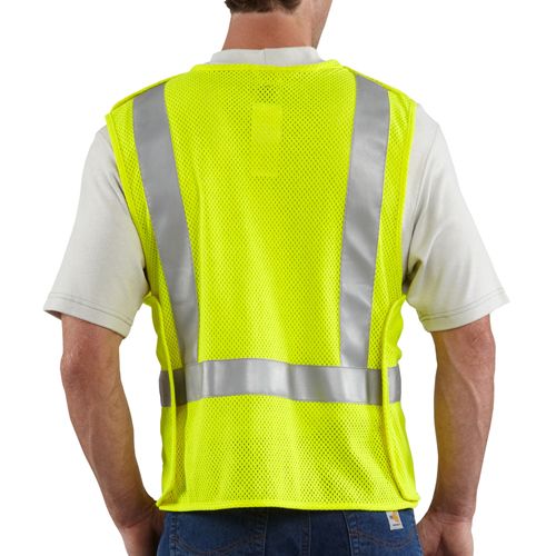 6.5-ounce FR mesh fabric: 85% modacrylic/15% Kevlar 3M Scotchlite Reflective Material 5 breakaway points: hook-and-loop closures on front, sides, shoulders Carhartt FR and HRC 1 labels sewn on left chest