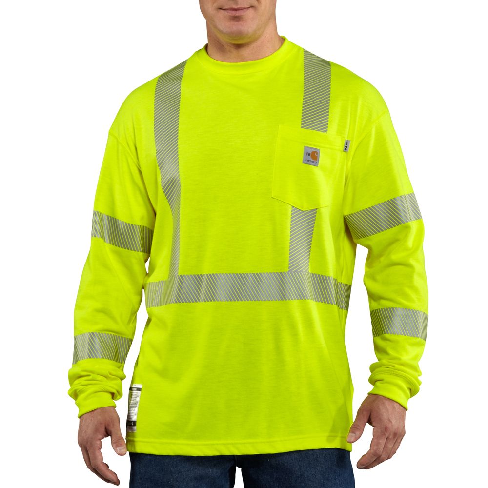 7.75-ounce knit, 61% modacrylic/ 32% cotton/ 7% polyester Stain Breaker technology releases stains Rib-knit collar and cuffs Side-seamed construction minimizes twisting ANSI Class 3, Level 2 compliant, 3M Scotchlite reflective material