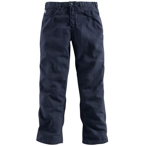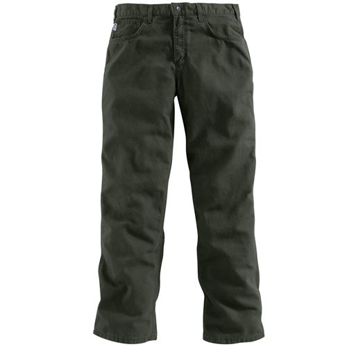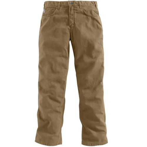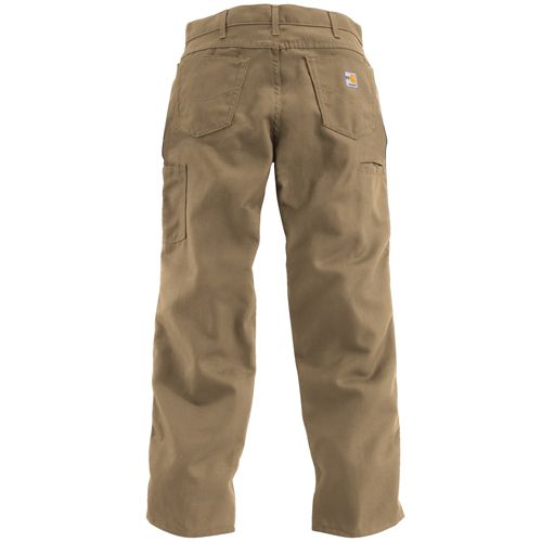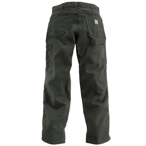 8.5-ounce, FR canvas: 88% cotton/12% high-tenacity nylon Sits slightly below the waist Loose seat and thigh Arc-resistant button closure at waist Cell phone pocket and multiple utility pocket