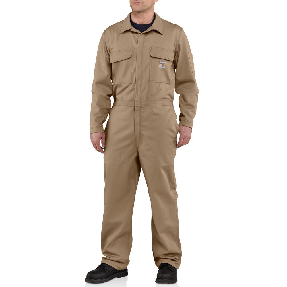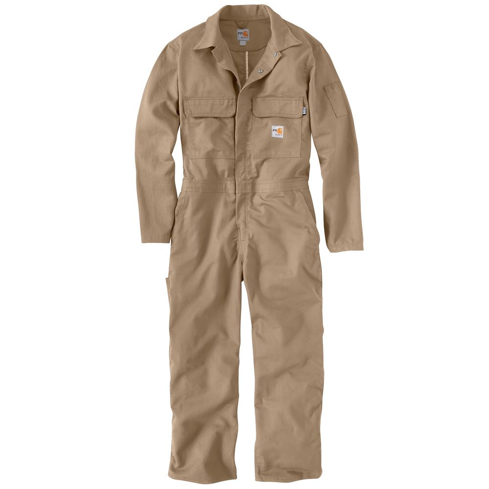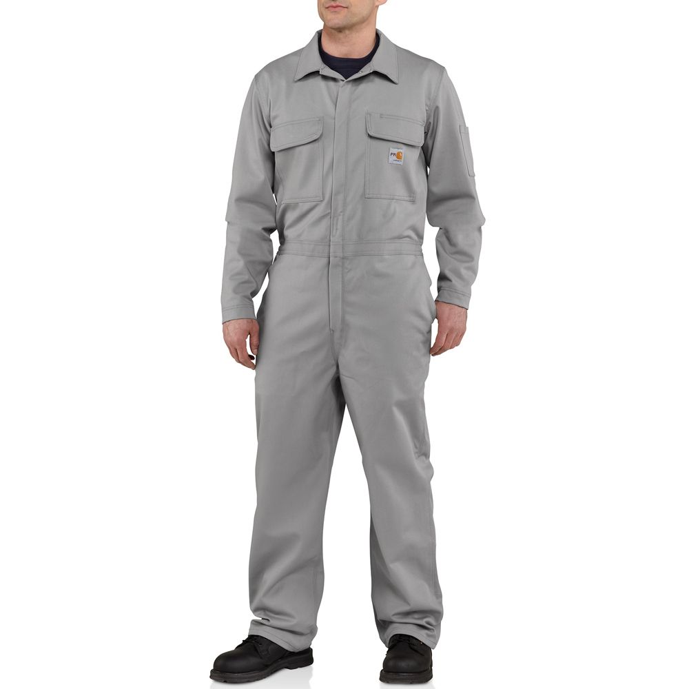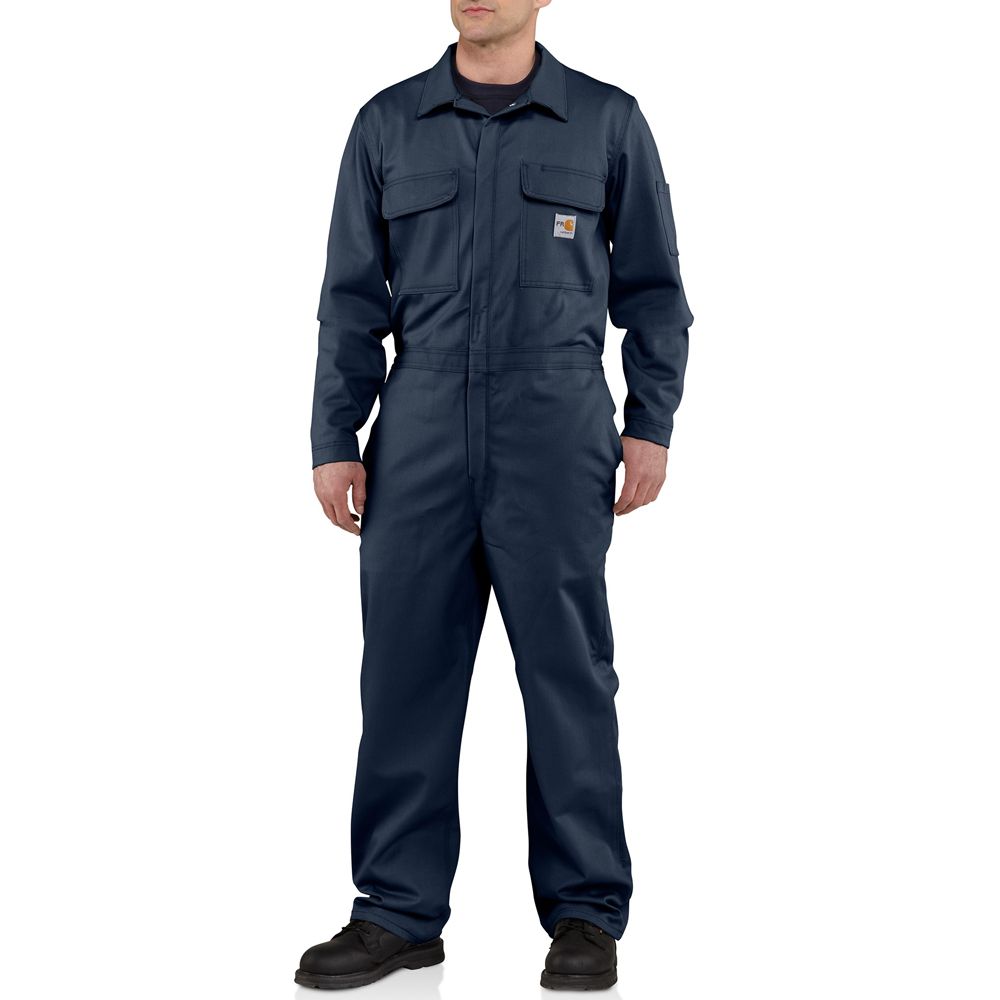 9-ounce, FR twill: 100% cotton Spread collar Two chest pockets with flaps Two pass-through pockets Utility pocketLeg openings fit over boots for easy on and off