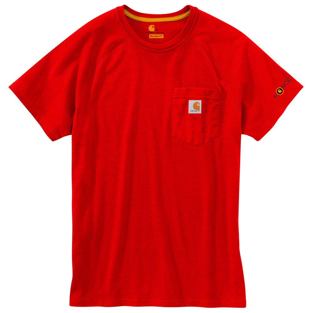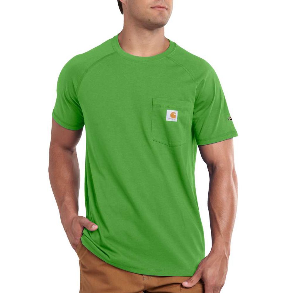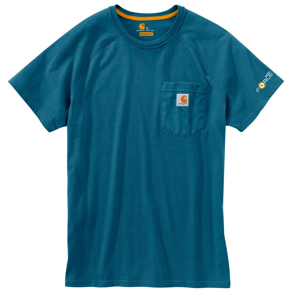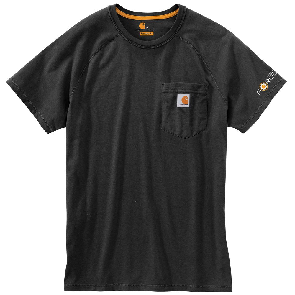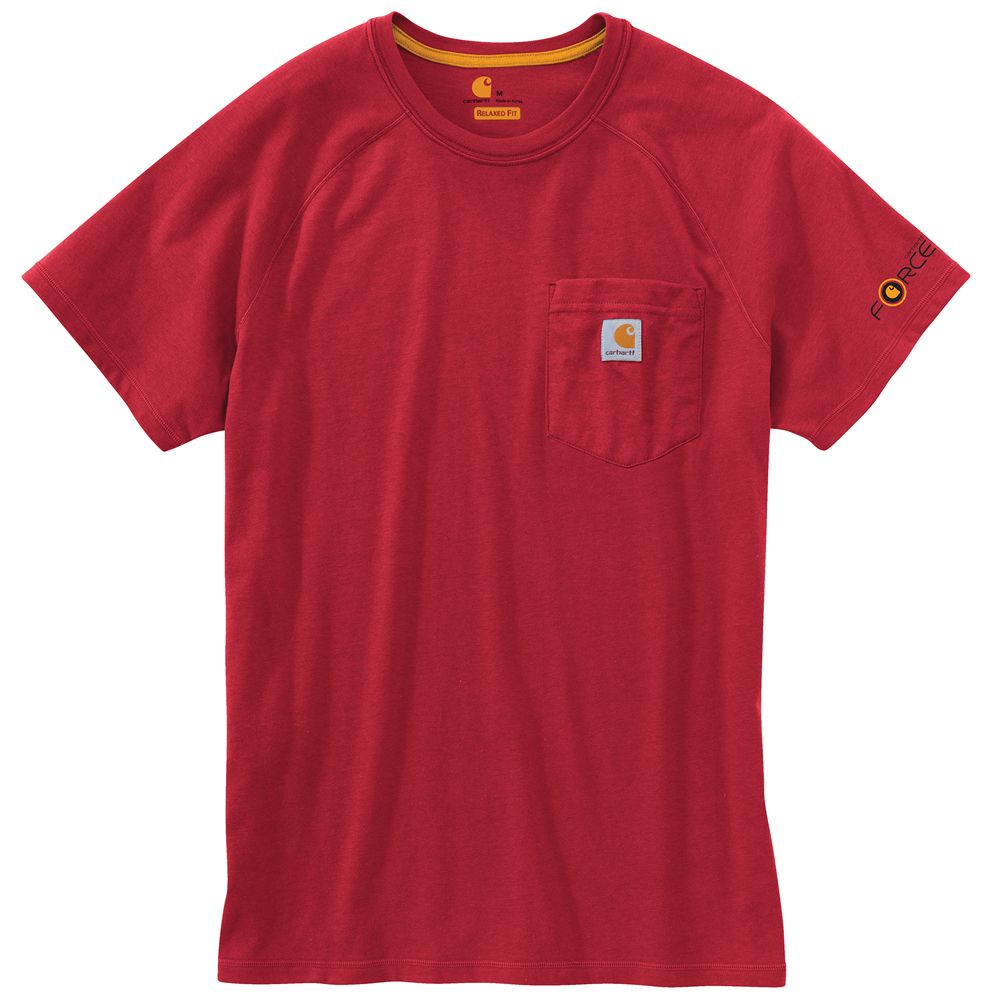 This shirt resists perspiration and stains and is made to last. Sweat is wicked away with FastDry technology. The technology called Stain Breaker removes stains. Plaited knit structure such that poly is near the skin for moisture conveyance while cotton on the face pushes moisture to the exterior. Raglan sleeves provide for more range of motion.