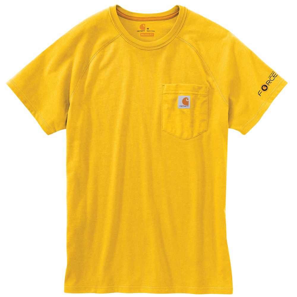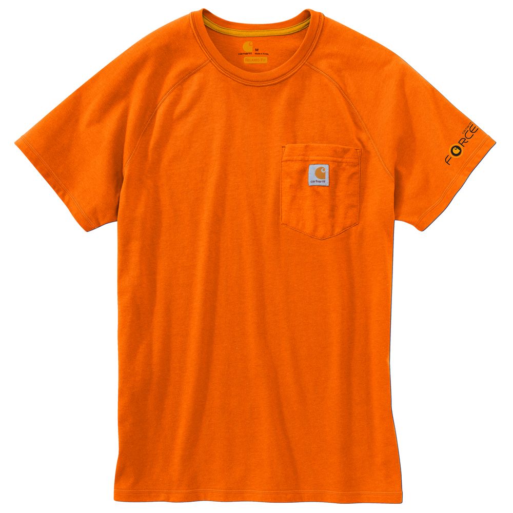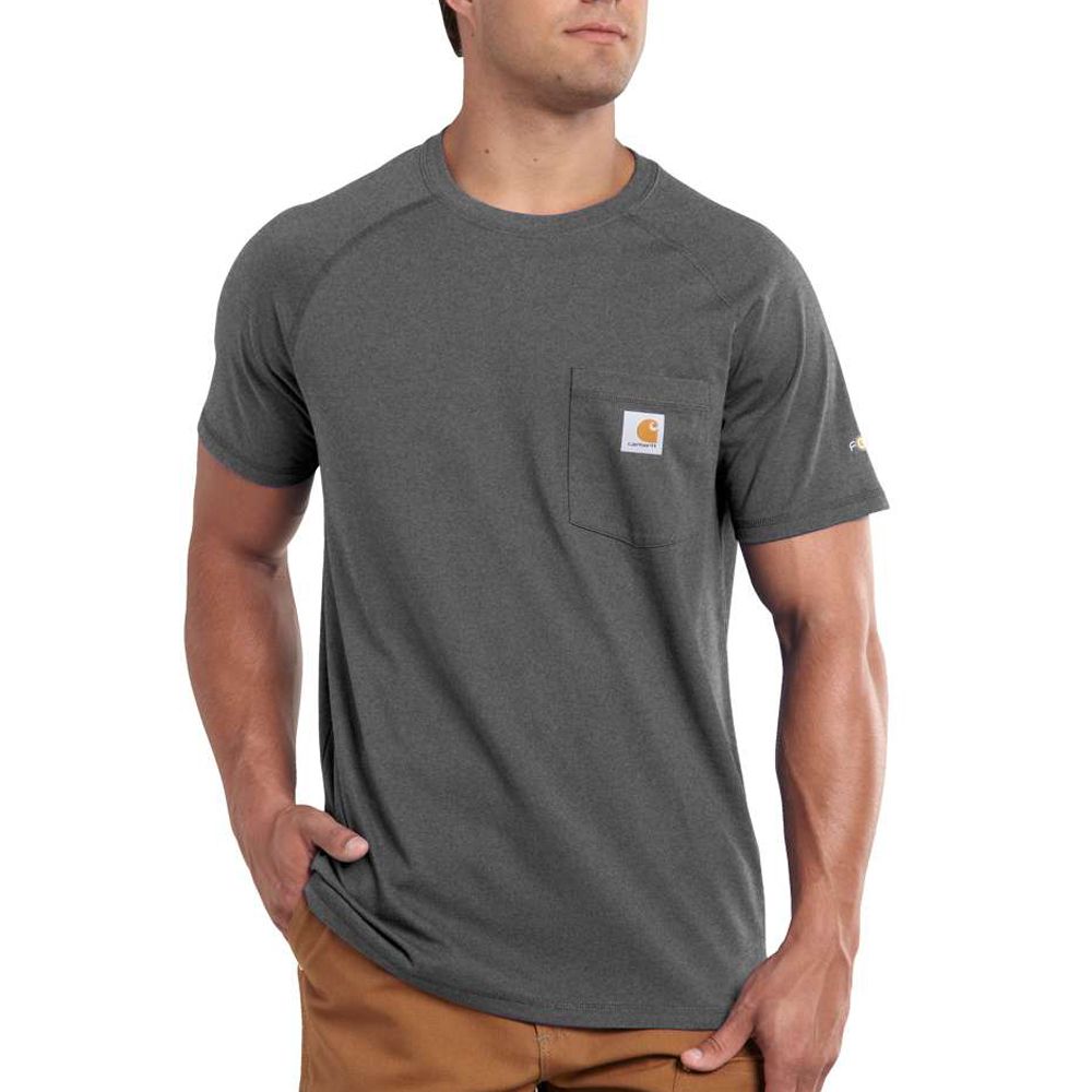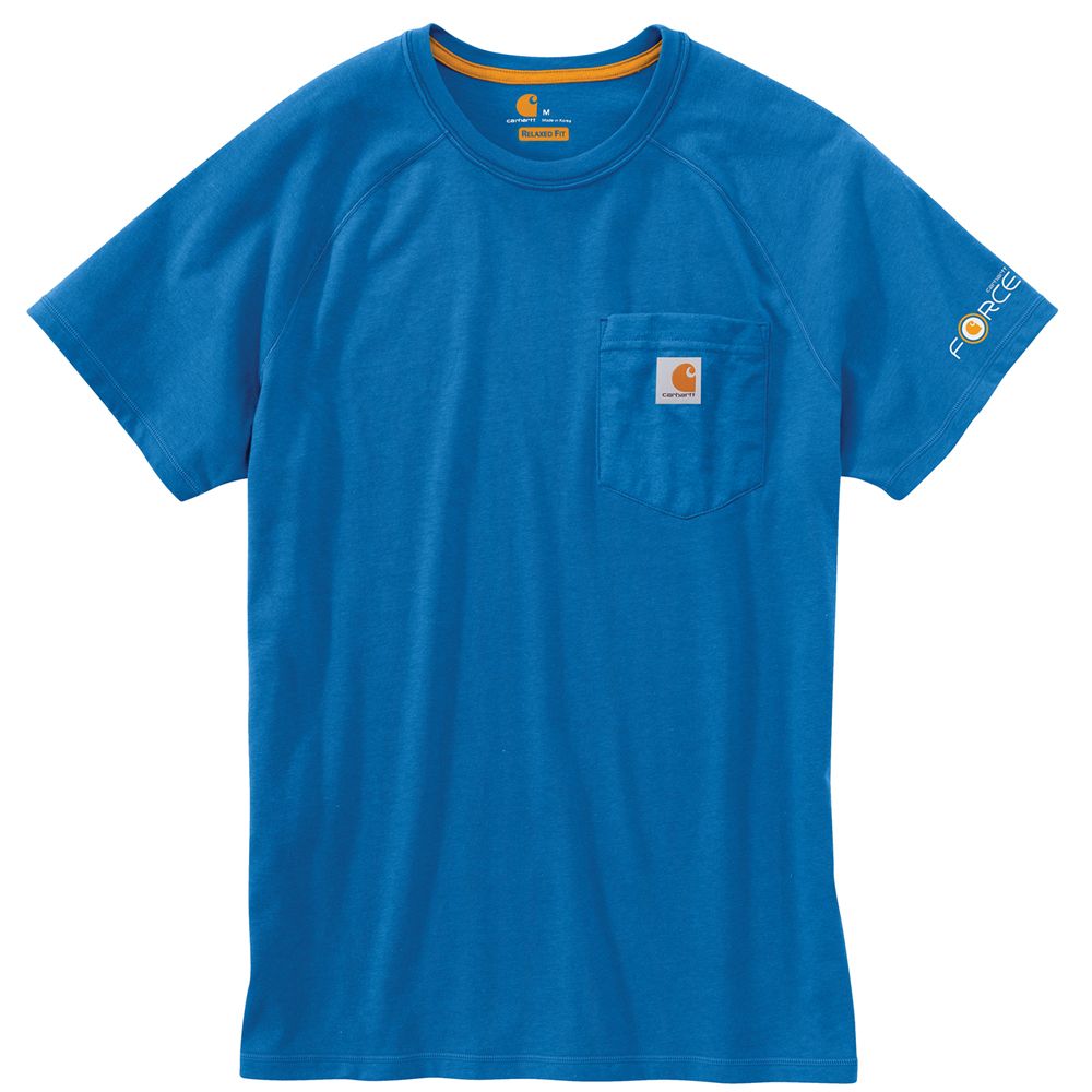 This shirt resists perspiration and stains and is made to last. Sweat is wicked away with FastDry technology. The technology called Stain Breaker removes stains. Plaited knit structure such that poly is near the skin for moisture conveyance while cotton on the face pushes moisture to the exterior. Raglan sleeves provide for more range of motion.