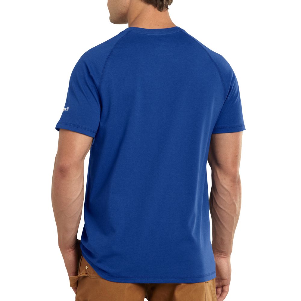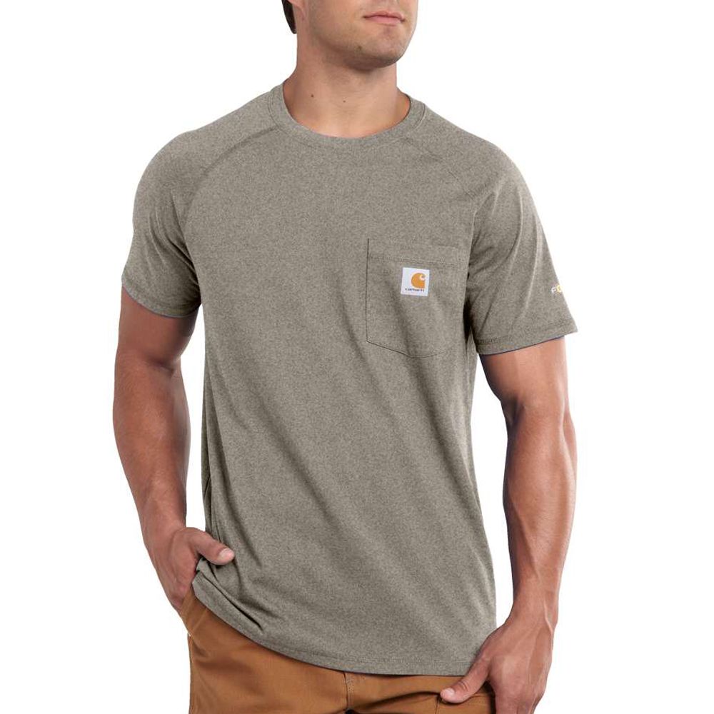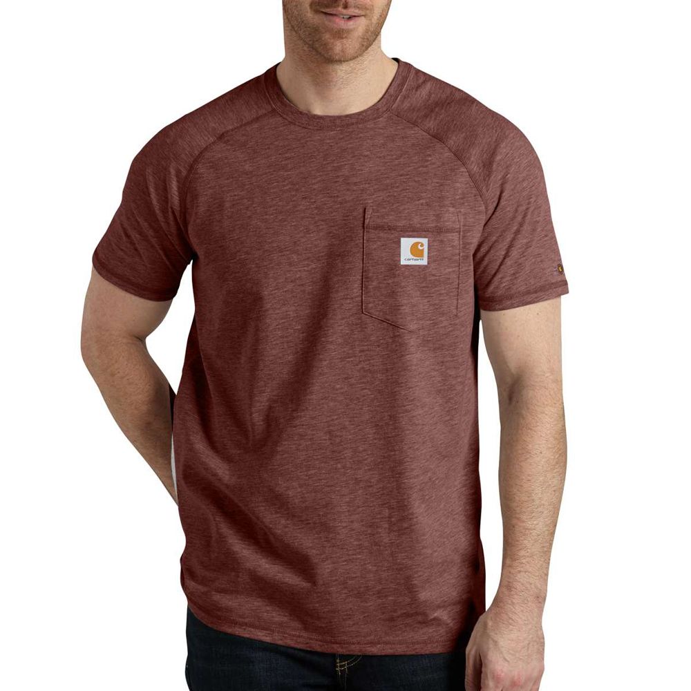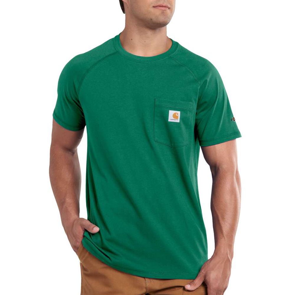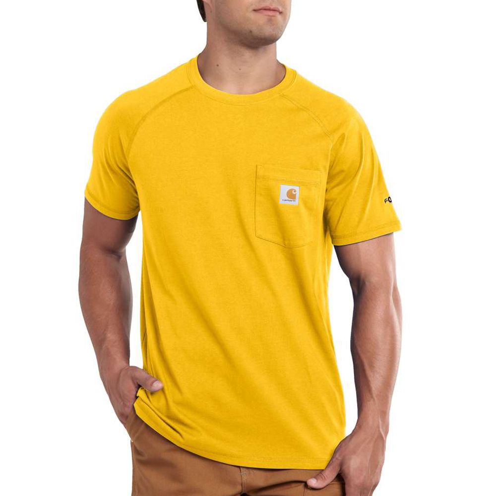This shirt resists perspiration and stains and is made to last. Sweat is wicked away with FastDry technology. The technology called Stain Breaker removes stains. Plaited knit structure such that poly is near the skin for moisture conveyance while cotton on the face pushes moisture to the exterior. Raglan sleeves provide for more range of motion.