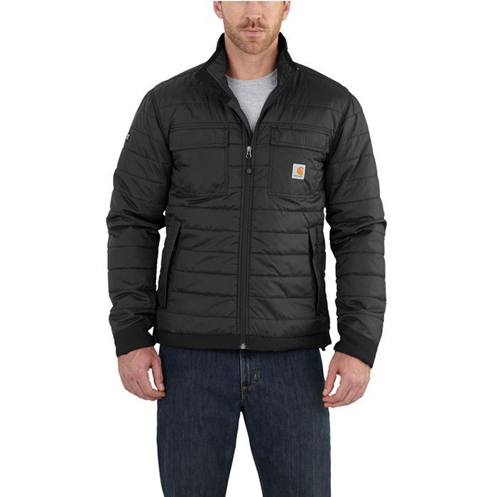 1.75-ounce, 100% nylon Cordura shell, 37.5 polyester lining quilted to 100gram 37.5 polyester insulation Zippered underarms for ventilation 2 chest patch pockets with snap closure Two inside pockets Carstrong reinforced sleeve hem and bottom hem Hook-and-loop adjustable cuffs, drawcord adjustable hem