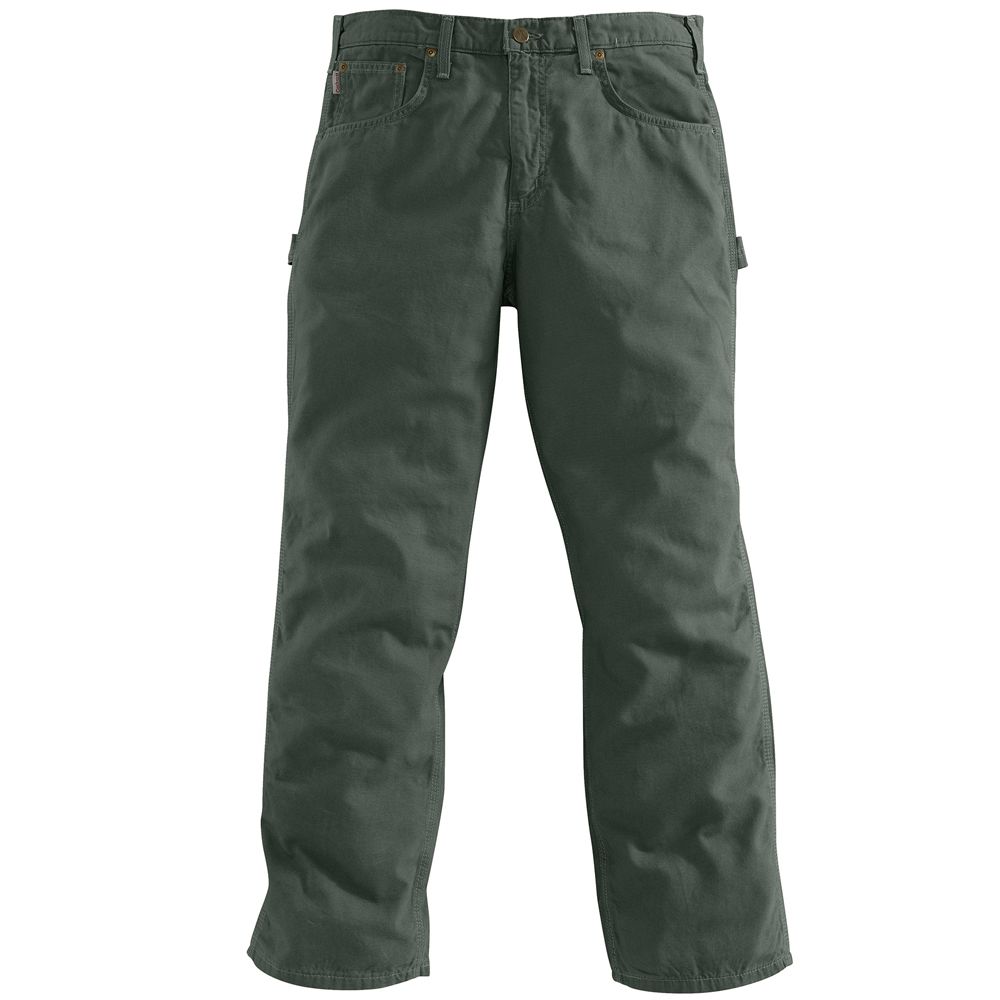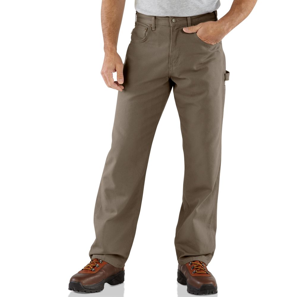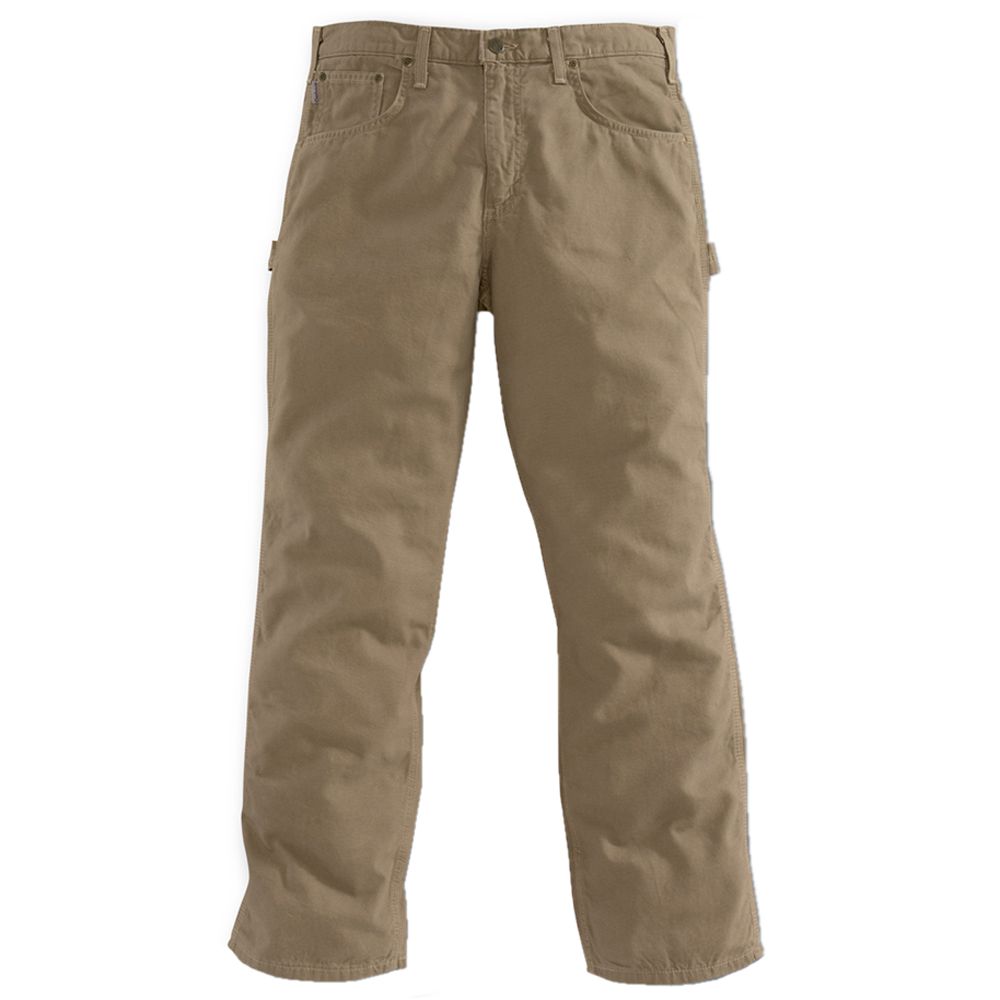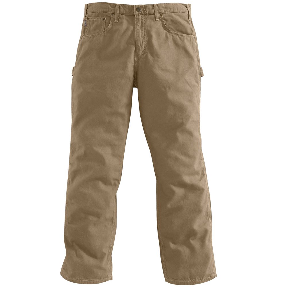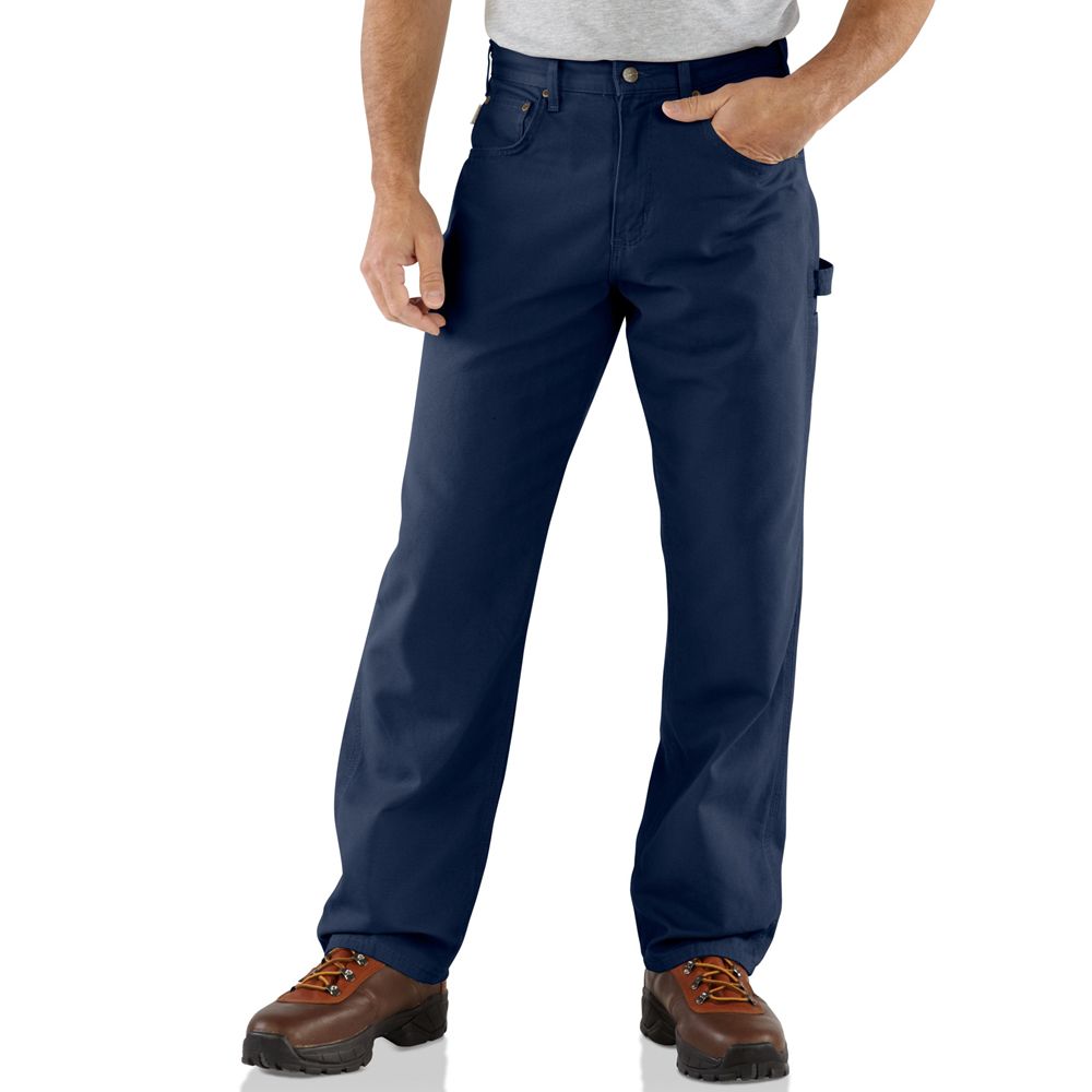 8.5-ounce, 100% cotton ring-spun canvas Sits slightly above the waist Full seat and thigh Cell phone pocket and utility pocket Two hammer loops Straight leg opening