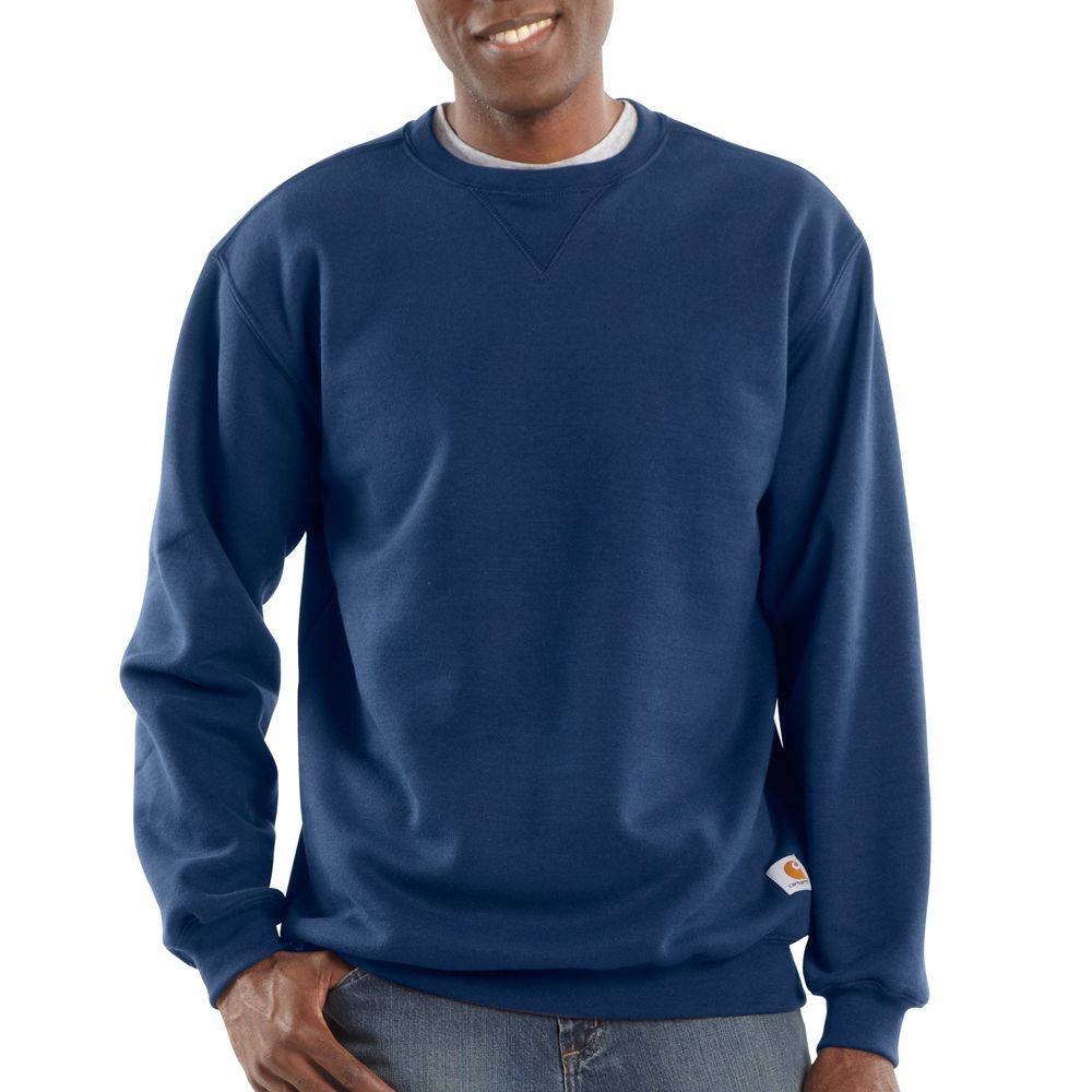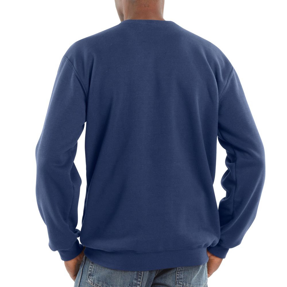 The Heather Gray variant features a slightly different composition with 70% cotton and 30% polyester, offering a unique feel. The sweatshirt is designed with a classic front-neck V patch, adding a timeless detail that enhances its overall structure. For added convenience and durability, the cuffs and waistband are reinforced with stretchable spandex, ensuring a snug yet flexible fit. The Carhartt label is neatly sewn onto the lower front, signifying the brand's commitment to quality and utility.