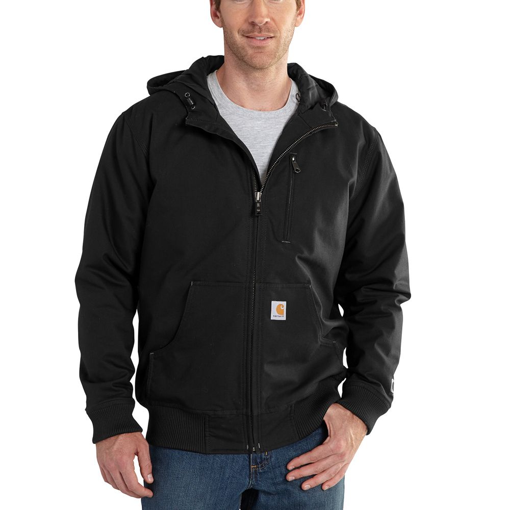 8.5-ounce, 60% cotton/40% polyester canvas 30% lighter and ounce-for-ounce as durable as sandstone Nylon lining quilted to 80-gram 3M Thinsulate Insulation in body and sleeves Attached quilt-lined hood with draw-cord closure Two inside pockets Triple-stitched main seams